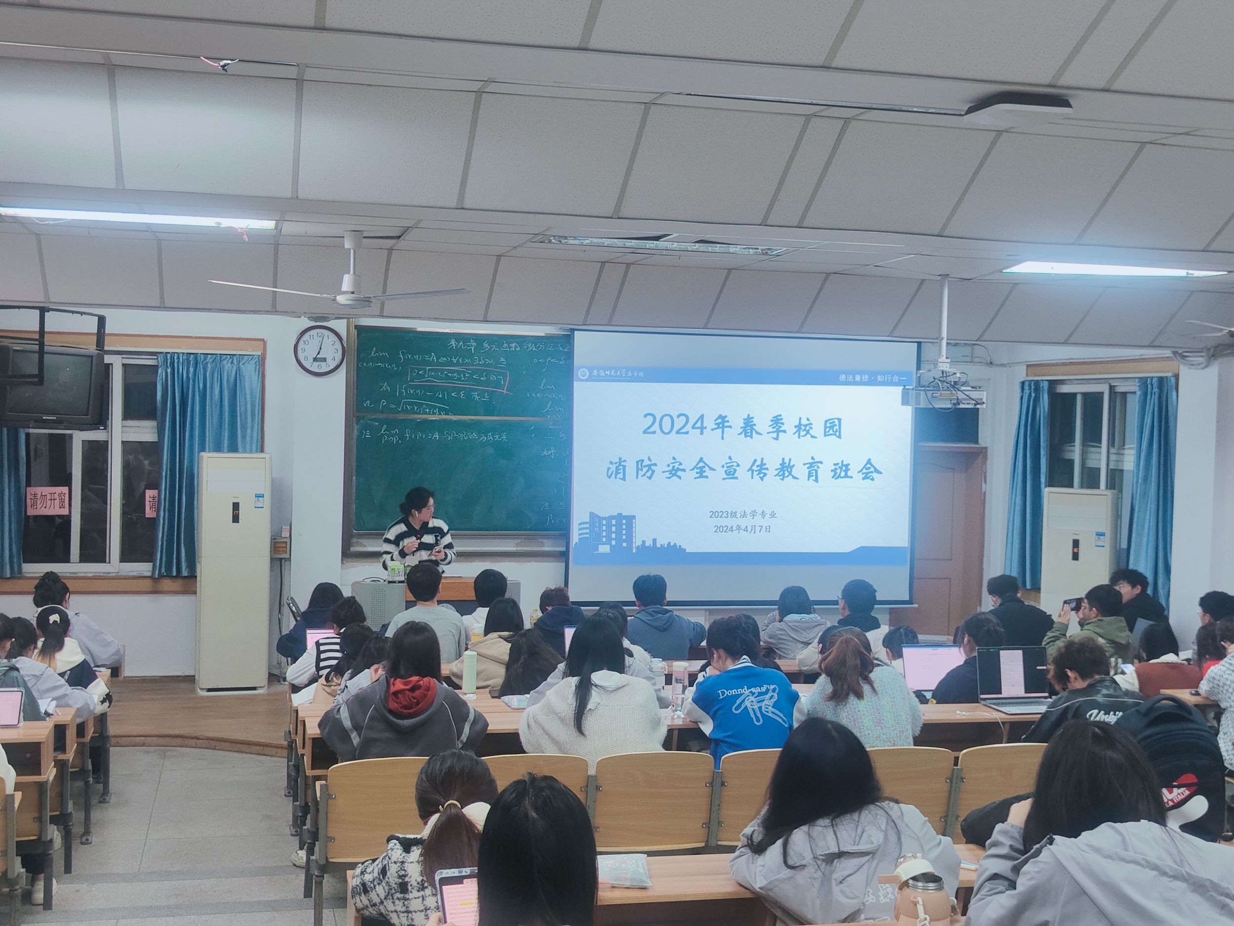 (本网讯 林文静 李晨冉)生命高与一切,安全重于泰山。为落实老员工护航行动计划,提高全体员工的消防安全意识,预防春季火灾事故的发生。4月7日晚,2023级法学专业于天门山校区实验楼组织开展了以“春季校园消防安全”为主题的班会活动。本次班会由安全委员张浥晨主持,法学专业同学参加。