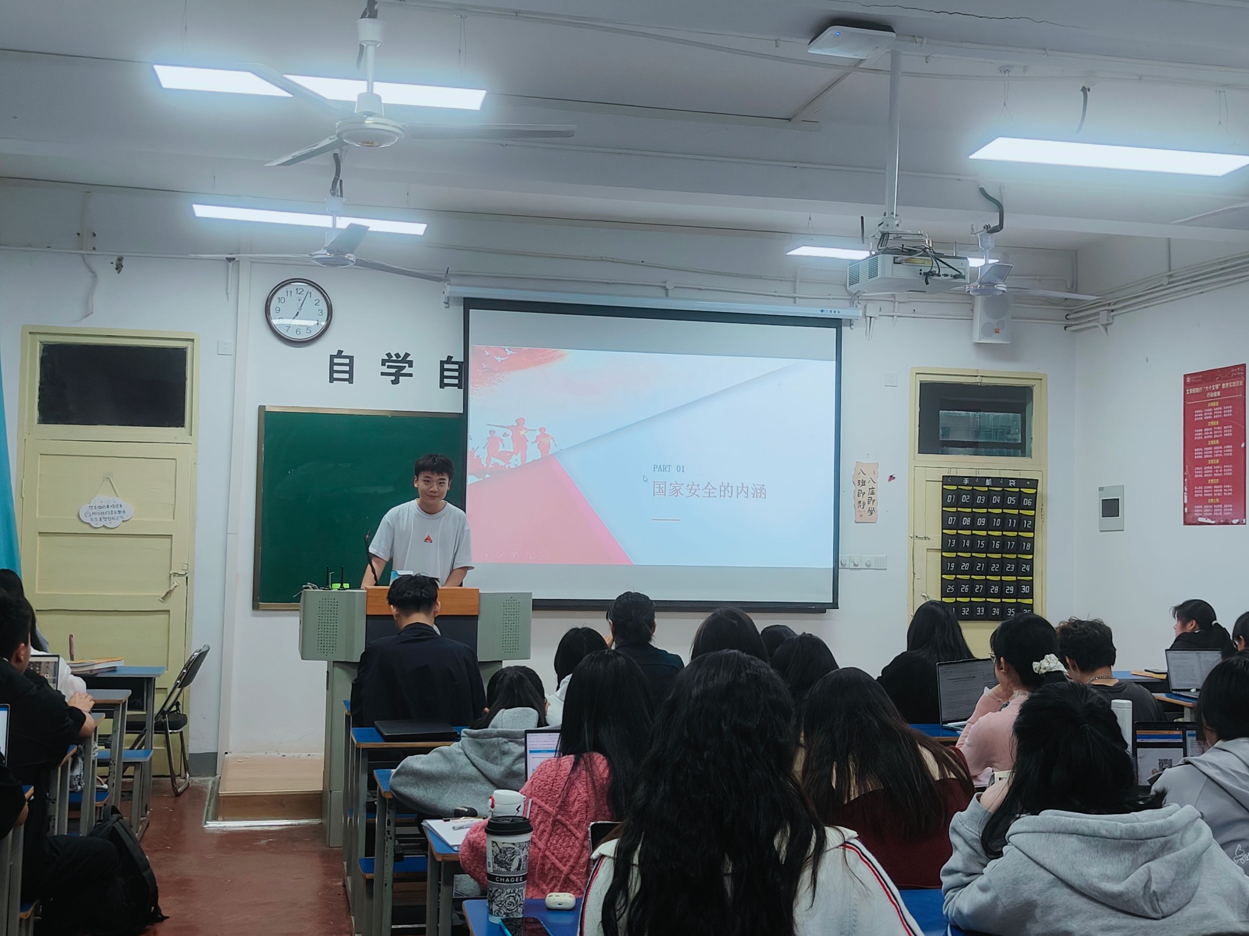 讲座现场氛围热烈,同学们认真专注地聆听着宋文强同学的讲解,不时发出热烈的掌声。此次宣讲的成功举办,不仅增强了同学们的国家安全意识,也激发了他们以实际行动维护国家安全的热情和动力。相信在未来的日子里,同学们将会以更加饱满的热情和更加坚定的信念,为国家安全事业贡献自己的力量!