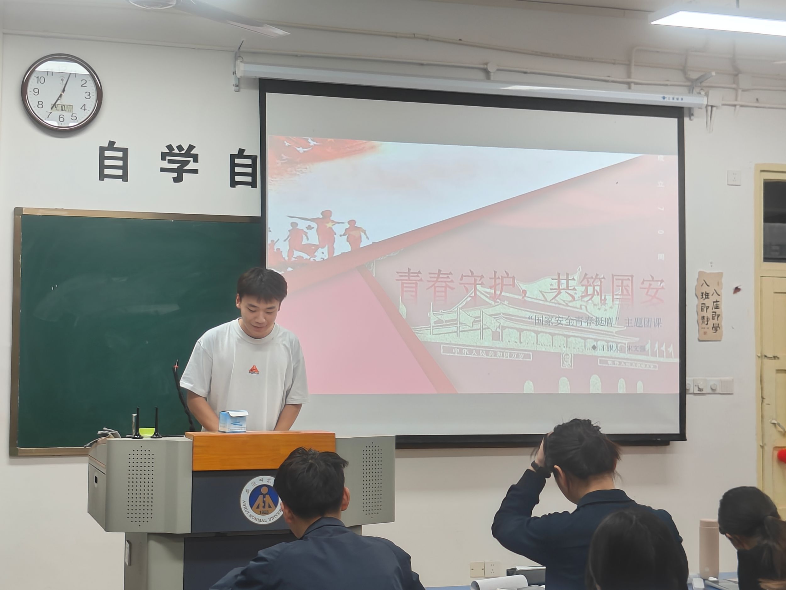 宋文强同学首先详细解读了国家安全的内涵。国家安全是一个国家政权、主权、统一和领土完整、人民福祉、经济社会可持续发展以及国家其他重大利益相对处于没有危险和不受内外威胁的状态。他强调,国家安全是民族复兴的根基,而青年一代则是维护国家安全的重要力量。其次,谈到当前国家安全面临的机遇与挑战时,宋文强同学结合国内外形势,分析了我国在政治、经济、环境安全等多个领域面临的挑战。最后,宋文强同学重点阐述了青年的历史担当。他以陈祥榕、杨波、刘真三位青年为例,讲述了他们如何以实际行动践行国家安全观,为国家安全事业作出了突出贡献。这些青年英雄的事迹深深感染了在场的同学们,大家纷纷表示要以这些先进典型为榜样,努力学习、积极实践,为国家的安全稳定贡献自己的青春力量。