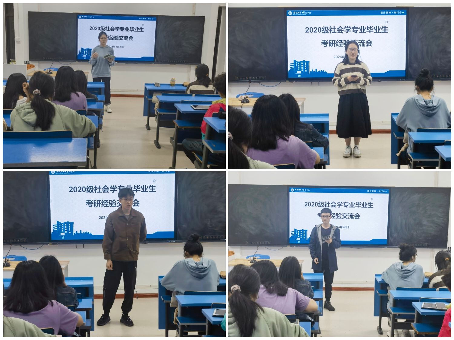2020级社会学毕业生代表分别就考研择校、专业课准备、面试技巧、心态调整等方面,各自分享了独到的见解。在交流答疑环节,大家的问题都得到了一一解答,分享会在热烈的掌声中圆满结束。