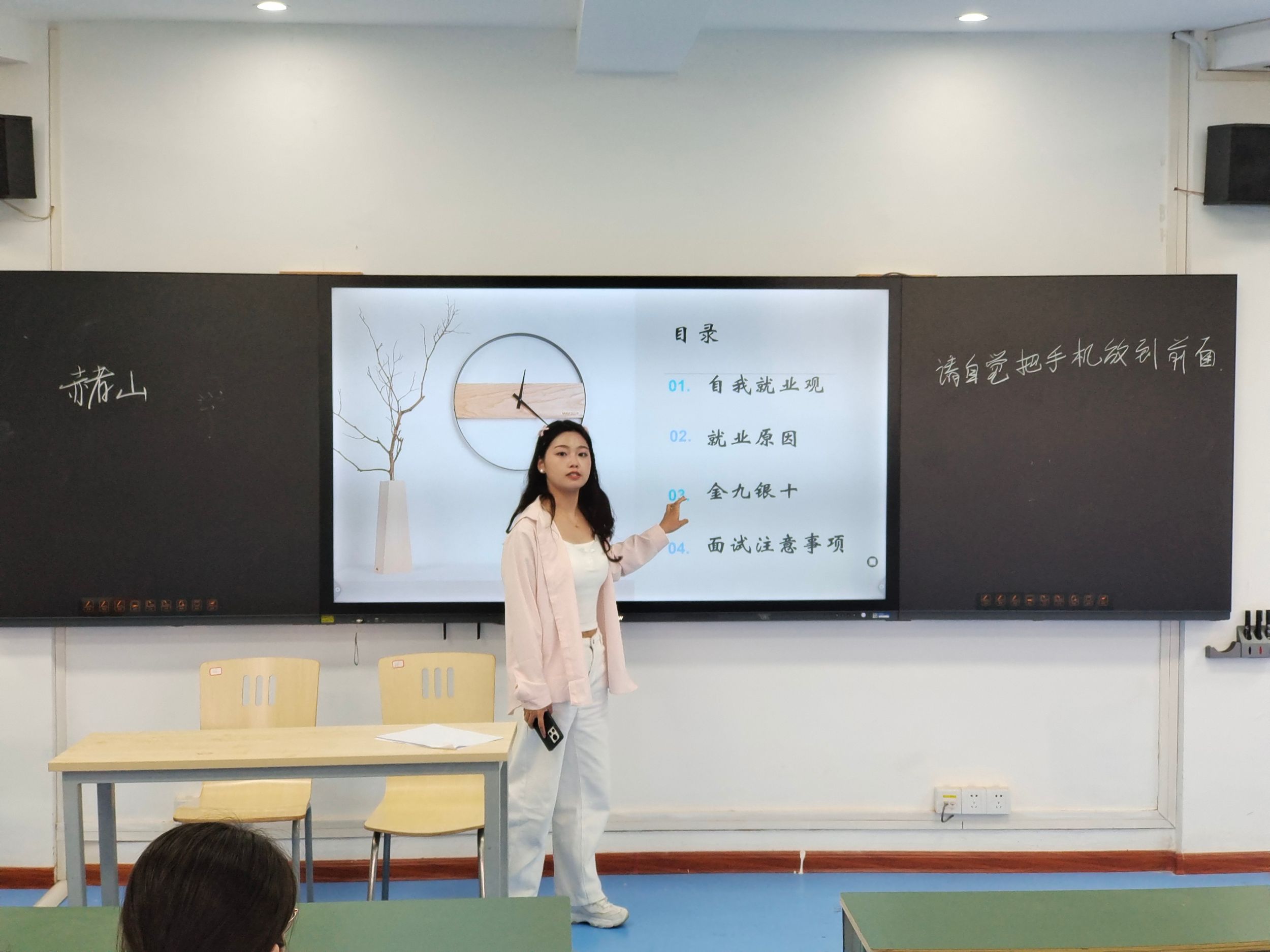 在交流答疑环节,学姐们针对同学们的就业困惑和问题一一解答,为大家提供个性化的指导建议,帮助大家更好地规划自己的职业发展道路。文/(汪兆舸)图/(耿佳慧)