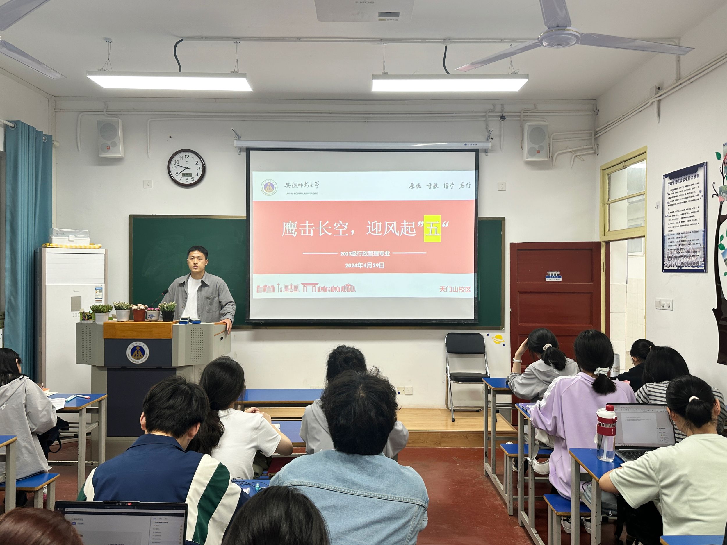在班会的最后,马涛指出五月是耕耘和奋斗的季节,希望大家以梦为犁,勇敢追梦,并祝愿全体同学欢度五一小长假,以更加饱满的精神状态迎接未来的学习和生活。