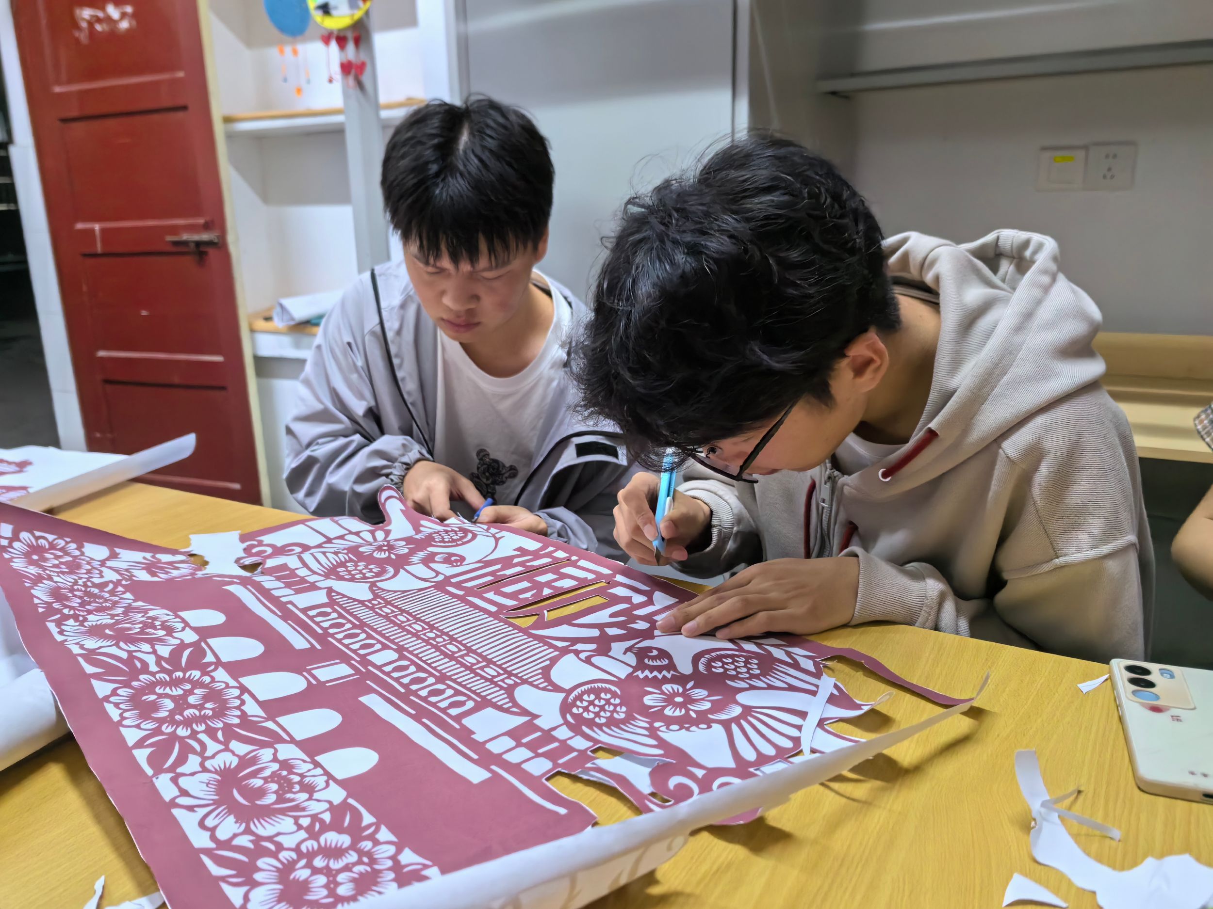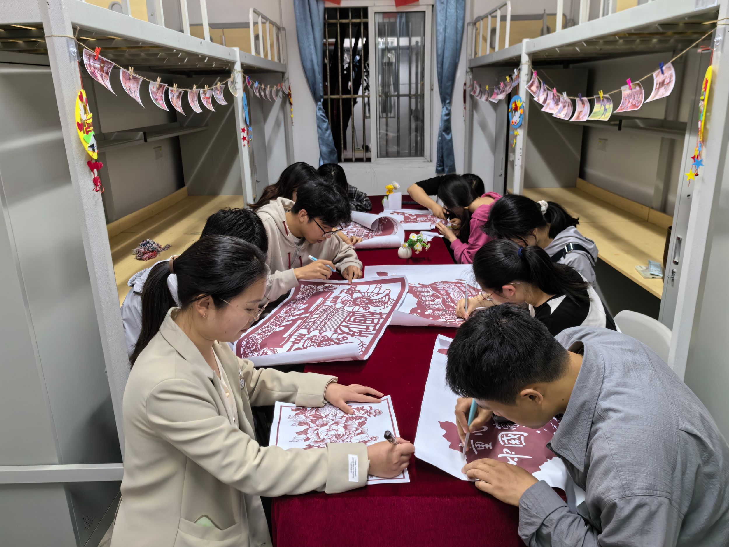 第二项为爱国教育剪纸活动。4月29日晚,“一站式”员工社区爱国主义小院活动室内吸引了众多同学参与尝试。同学们在老师的指导下,巧妙地将红色元素融入剪纸作品中。一幅幅精美的剪纸作品,展现了中华民族的优秀传统文化和爱国情感。该活动不仅锻炼了同学们的动手能力和创新思维,也增强了他们对文化自信和民族自豪感的认同。