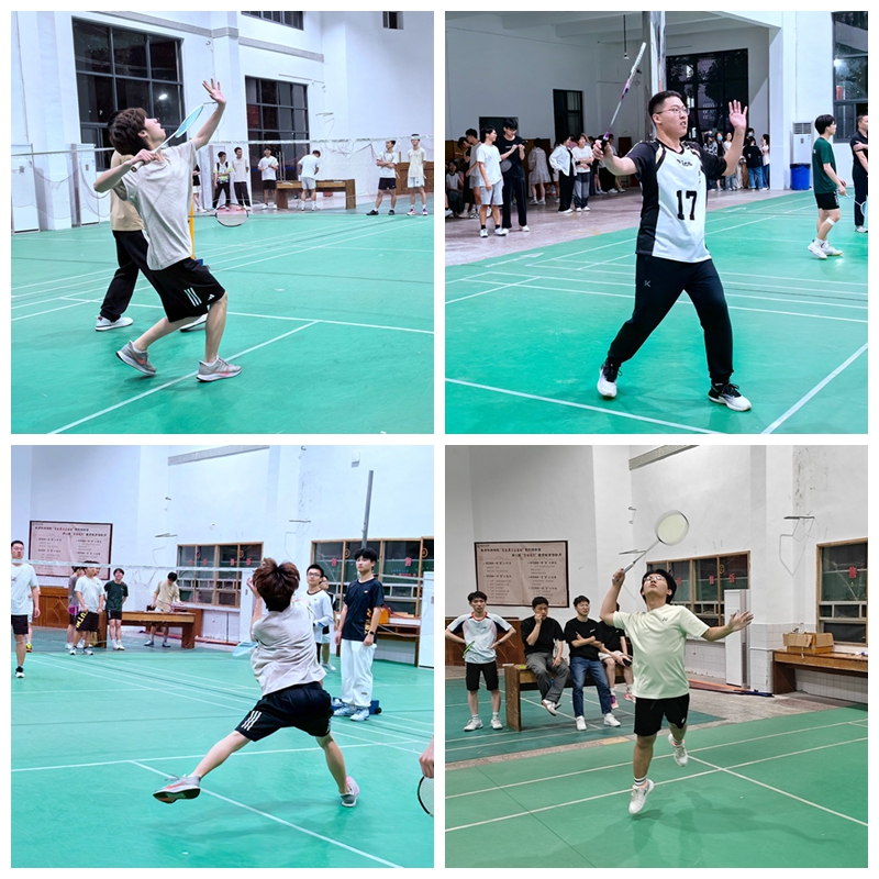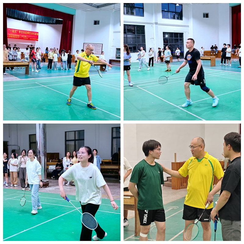 本次比赛共分为小组预赛和决赛两个阶段,采用混合团体赛制,参赛双方按照男单、男双、女单、女双的比赛顺序展开竞赛,采用21分进球制,遵循公平竞争、友谊第一、比赛第二的原则。高远球、扣杀、劈杀、轻吊、平抽、快打……比赛场上热火朝天,老师和同学们纷纷展现出了不同的击球方式。赛场内的选手们挥洒汗水,展现球技,赛场外的观众热情高涨,为选手呐喊助威,整个运动场呈现热火朝天的景象。