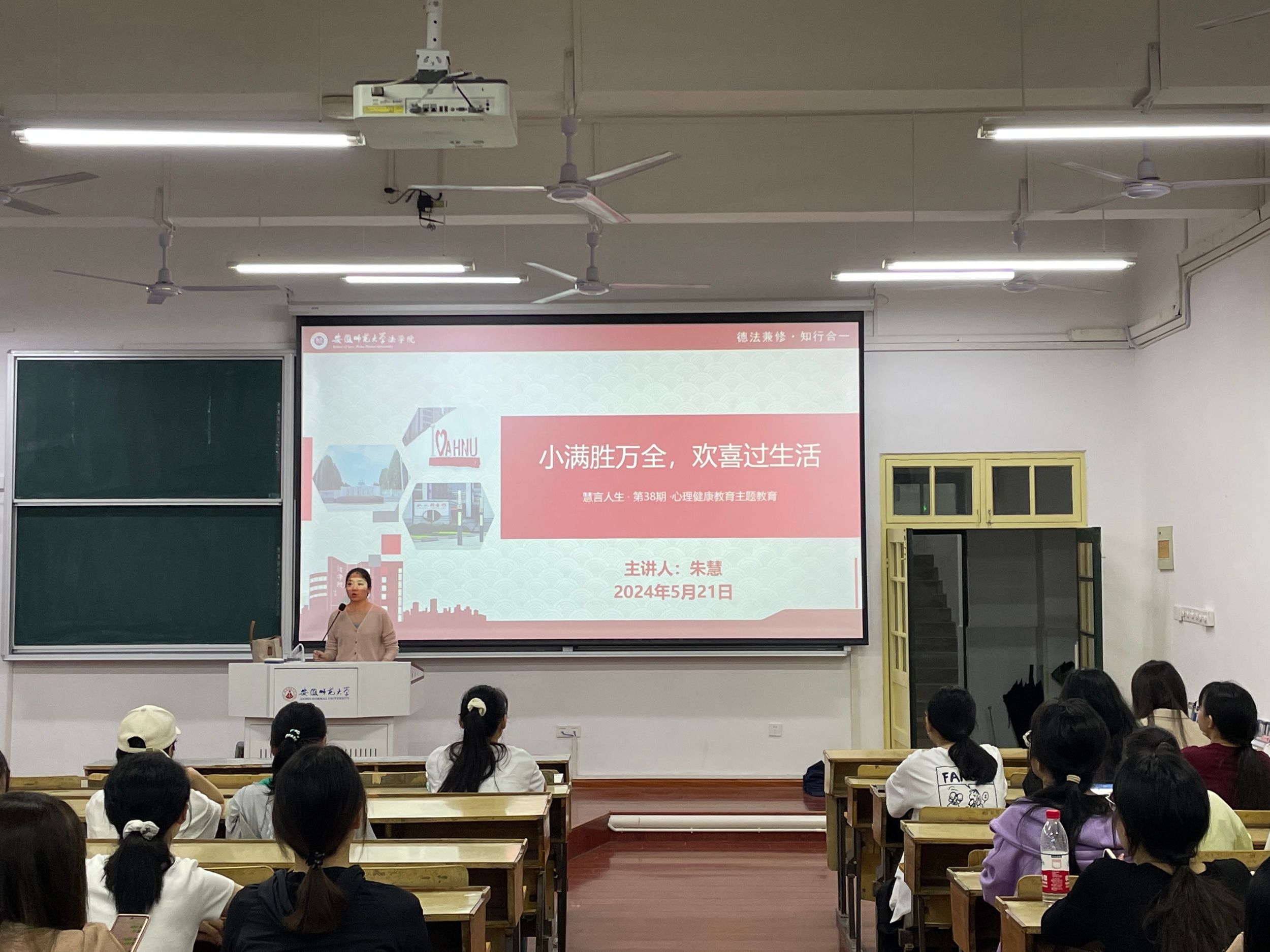 小满胜万全,欢喜过生活。 辅导员朱慧于5月21日召开“小满胜万全 欢喜过生活”主题班会,并鼓励大家不要避讳心理问题,要勇于直面焦虑烦躁和失眠。以积极阳光健康的心态投入学习和生活中。
