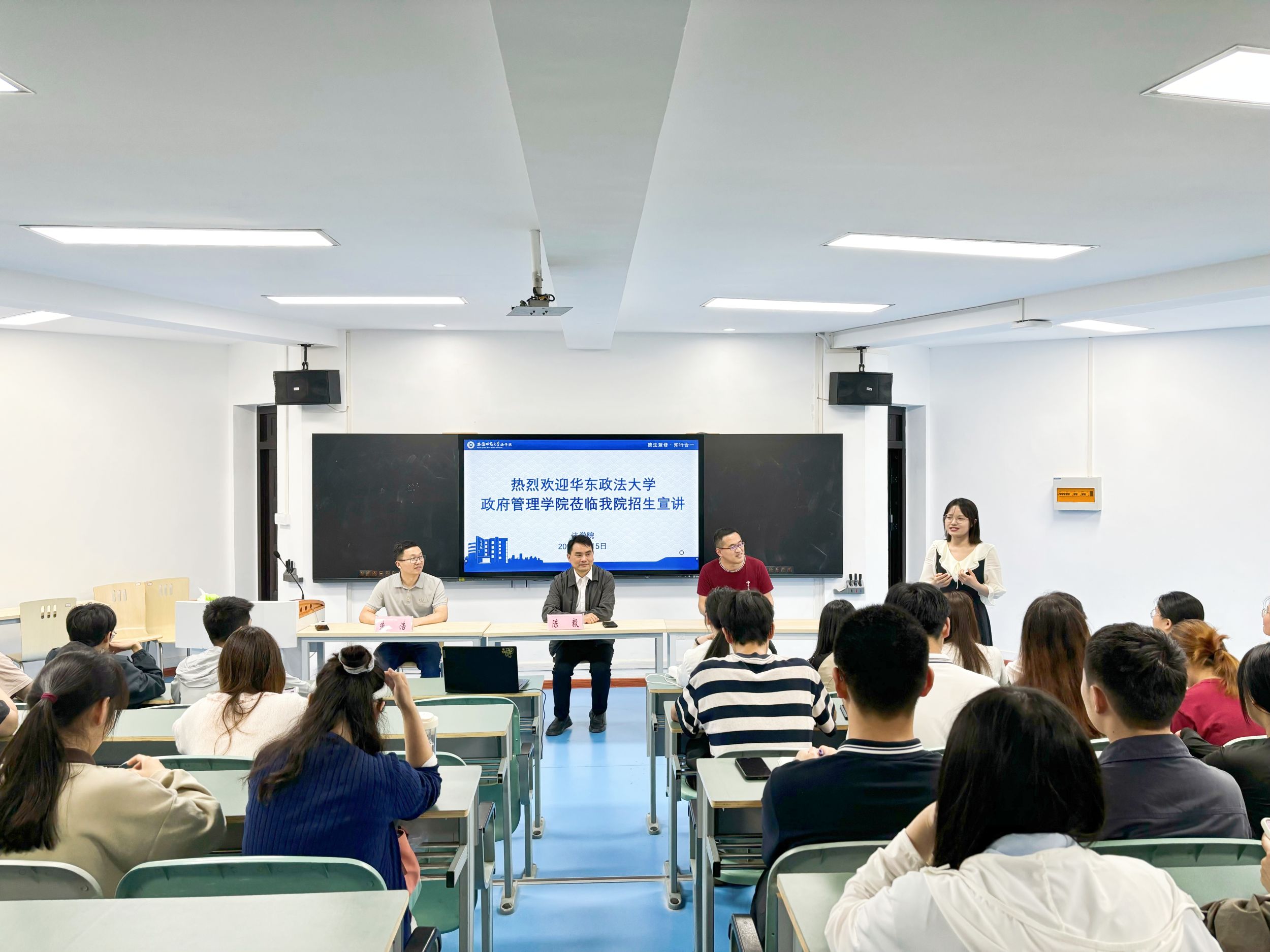 为引导员工进一步认清就业形势,精准把握考研目标,6月5日晚,华东政法大学政府管理公司陈毅教授、朱浩副教授、权瑞松副教授一行莅临公司开展2025年研究生招生宣传。2021级行政管理专业全体员工现场参加,部分2022级、2023级行政管理专业本科生线上参会。活动由辅导员赵悦主持。
