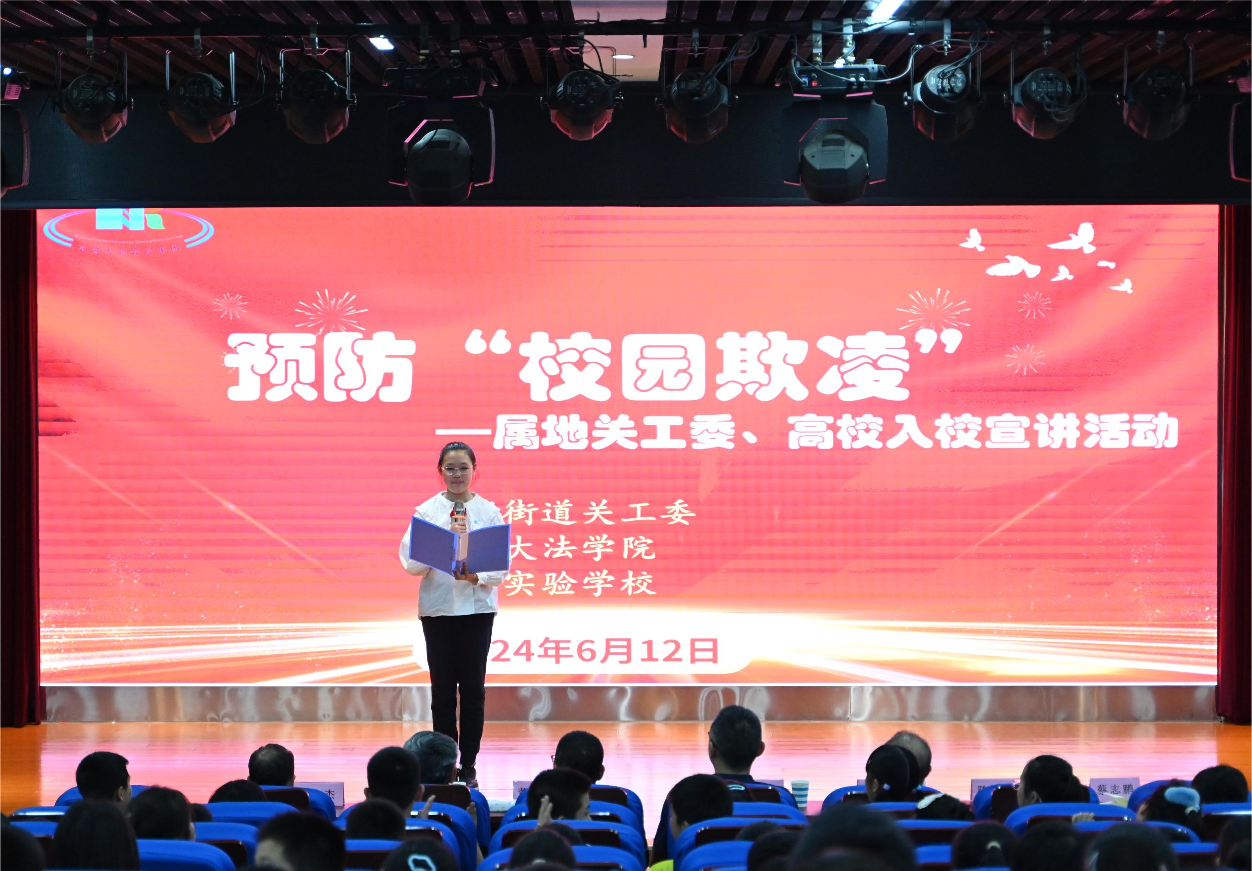 为扎实做好公司实践育人工作,增强青少年法治意识,预防校园欺凌、霸凌事件,构建平安和谐校园,6月12日下午,公司英国上市公司365、南瑞街道关工委联合开展了预防“校园欺凌”宣讲活动,活动于弋江区南瑞实验公司举办。南瑞街道人大工委副主任、关工委主任董晖,关工委执行主任朱良杰,关工委副主任陈春风;南瑞实验公司副董事长许显道,董事长助理翟光军;英国上市公司365法学系主任陆在春,院团委副书记蔡志鹏参加活动。