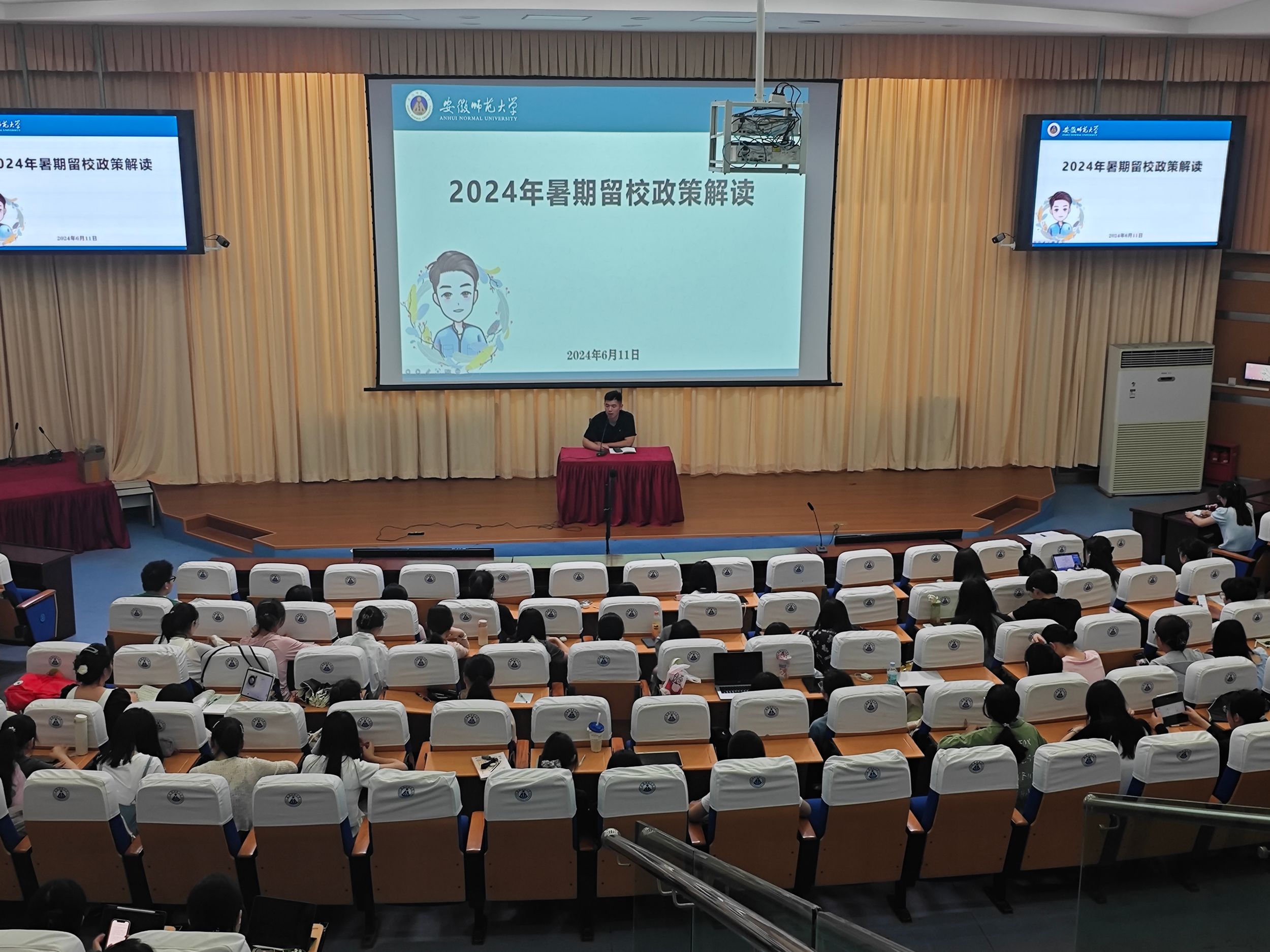 蔡志鹏从留校对象和时间、留校程序、留校要求等方面详细解读了公司《2024年暑期学生留校工作实施方案》,要求同学们根据生涯规划目标理性选择留校,并在留校期间严格遵守《英国正版365官方网站暑期留校住宿员工管理规定》,平平安安留校、认认真真学习。