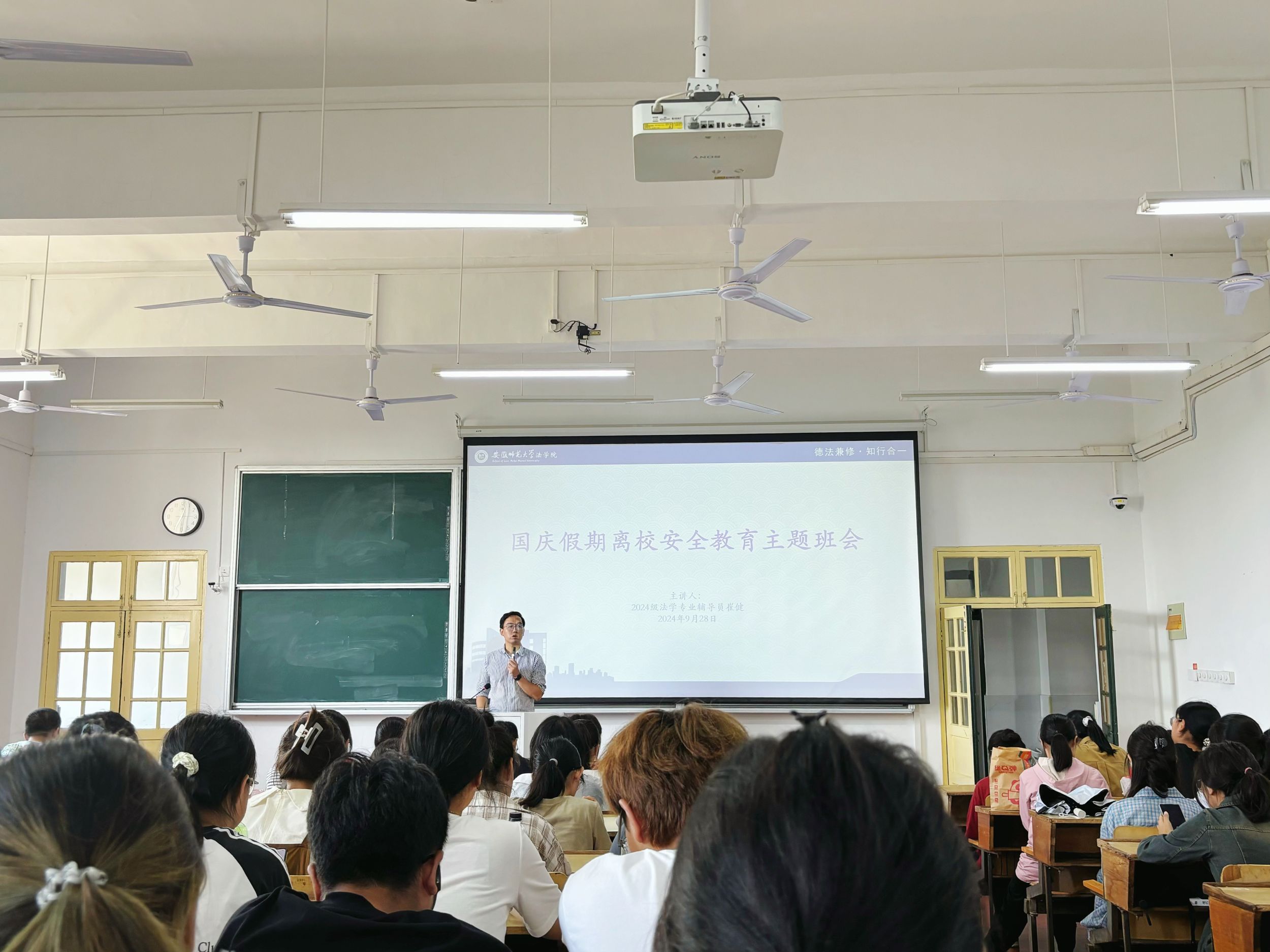 为贯彻落实公司“老员工护航计划”,提升员工安全防范意识,确保国庆假期安全离返校。9月28日,2024级法学专业于教学楼1401教室召开国庆假期安全教育主题班会,会议由法学专业辅导员崔健主持。2024级法学专业全体同学参加。