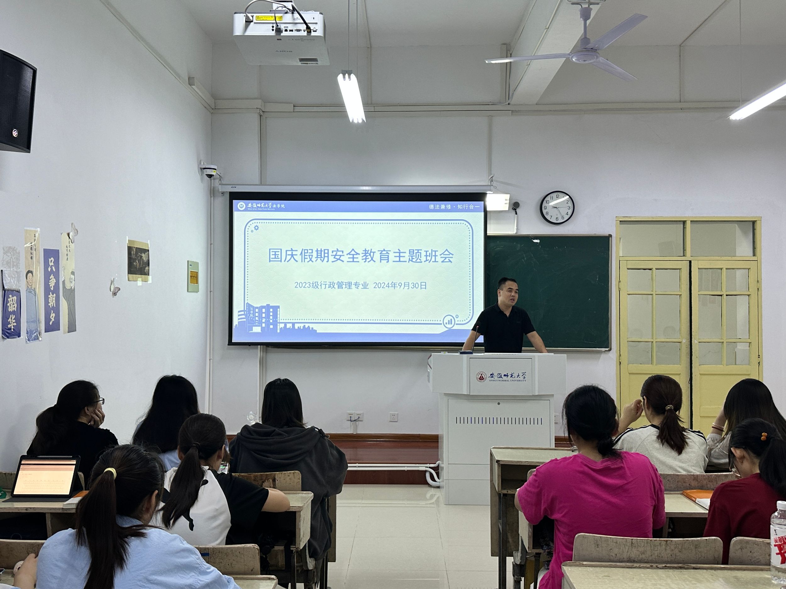 为深入增强员工假期安全意识,营造良好的学风、班风、室风。9月30日上午,英国上市公司3652023级行政管理专业于教学楼1408召开2024年国庆假期离校安全教育主题班会。