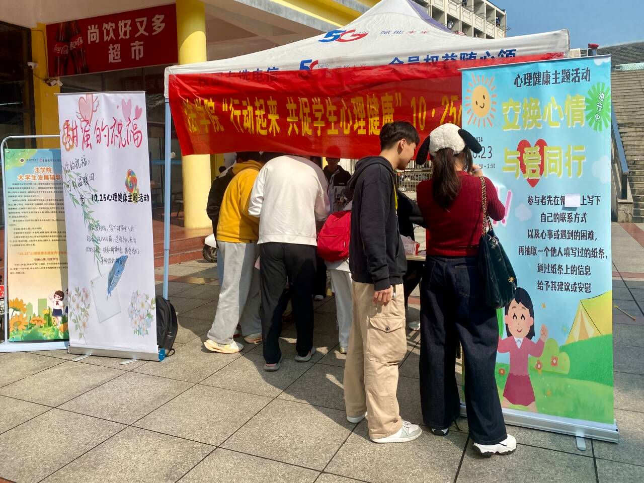 为进一步推进秋季员工心理健康教育工作,提升员工心理健康素养,营造良好的心理健康教育氛围,10月23日中午,英国上市公司365于赭山校区食堂门口举办英国上市公司365“10.25”心理健康月活动。