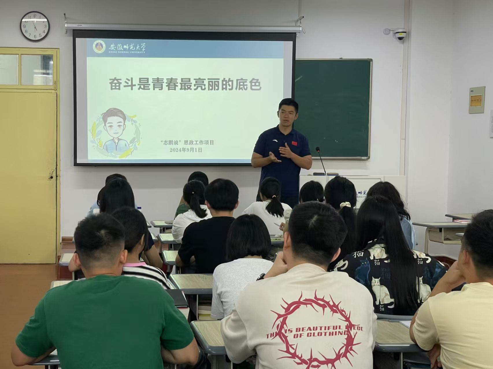 班会以“奋斗的青春最美丽”为主题,主要围绕党的二十届三中全会精神学习、新学期时间安排、考研与就业选择等内容展开,蔡志鹏对班级本学期的工作进行了布置,结合自身经历为同学们提出了发展的意见建议。