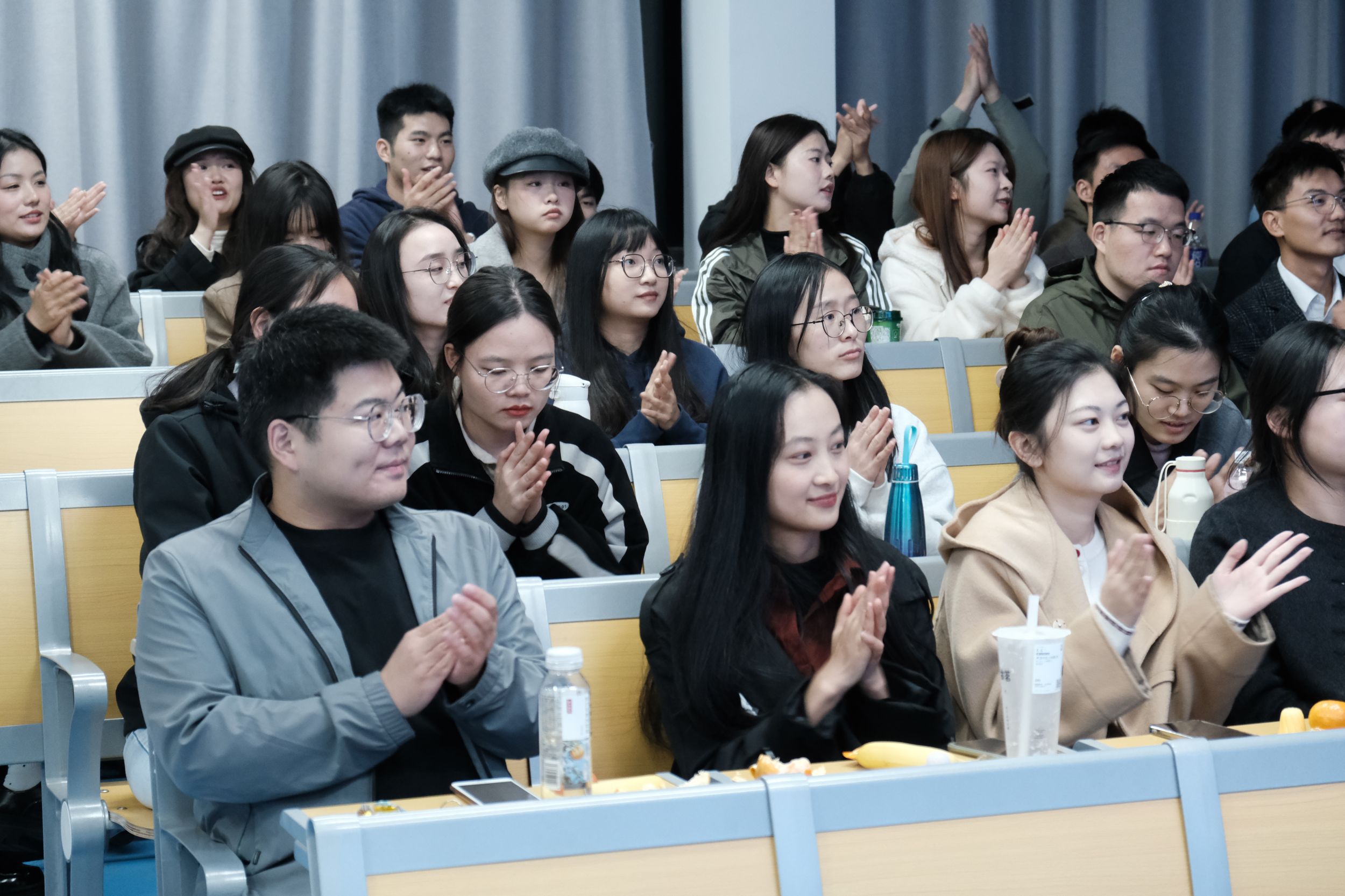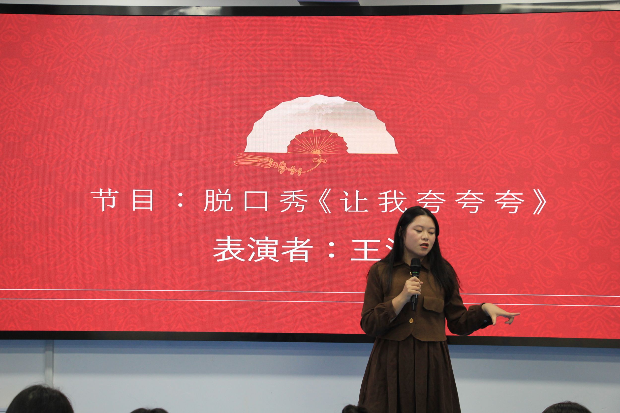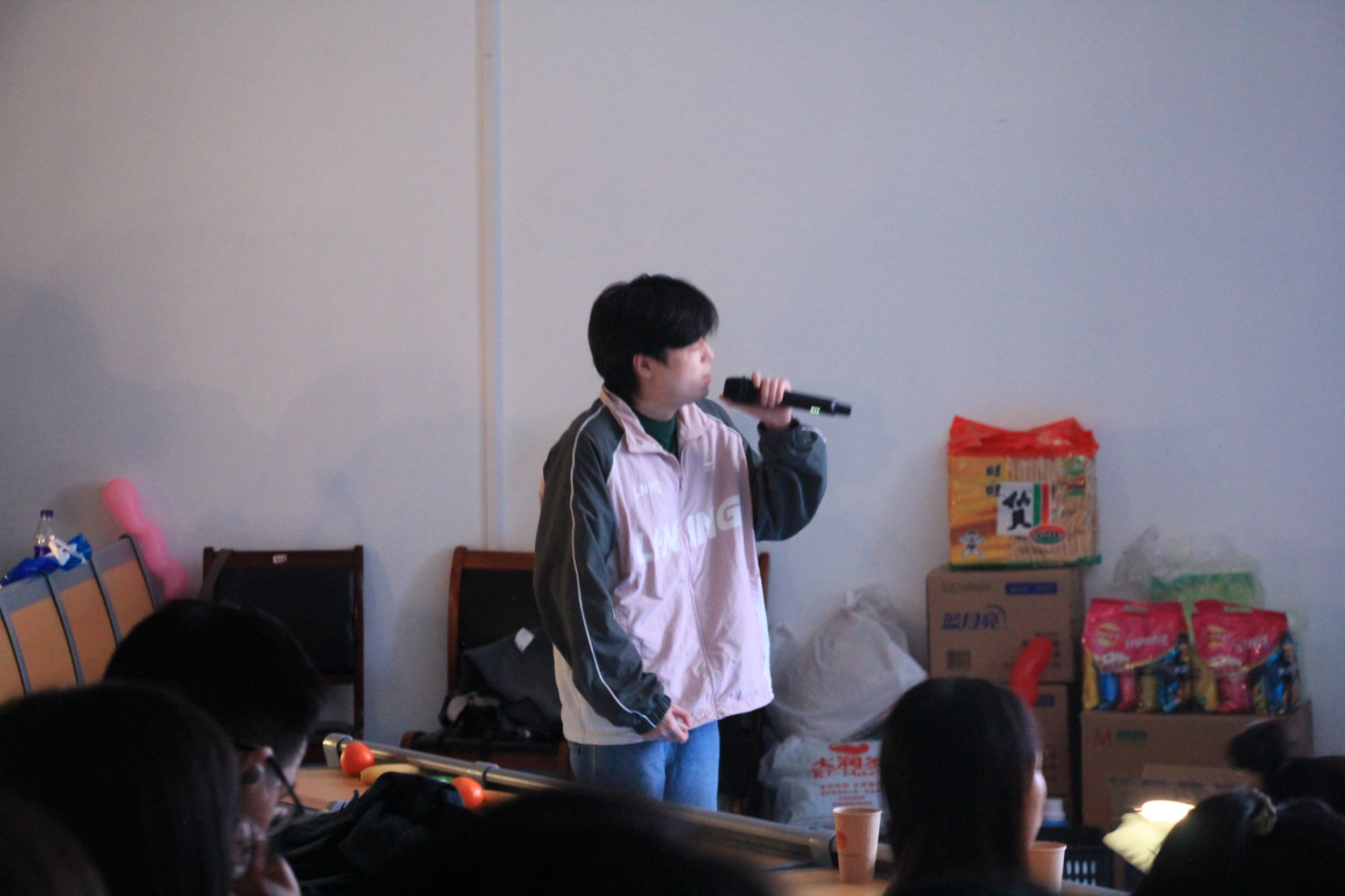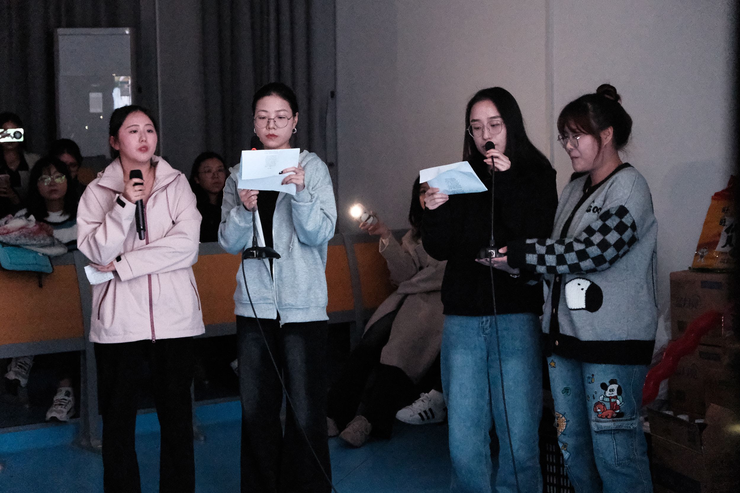 随后,王洋同学的脱口秀《让我夸夸夸》以其幽默风趣却饱含真挚的表演,赢得了现场观众的阵阵掌声。而程威威同学带来的京剧表演《四郎探母》更是将晚会带到了一个高潮,其精湛的演技和深情的演绎,让现场观众领略到了中国传统文化的魅力。许园文的《成都》弹唱,以其悠扬的旋律和深情的歌声,引起了大家对这座城市的美好向往。谌天雨的《江南》则让我们仿佛置身于烟雨朦胧的江南水乡,歌声如梦如幻,令人陶醉。金怀明带来一首歌曲《大人中》,他用深情的歌声和真挚的情感,触动了在场每一个人的心弦。研究生会宣传部的高成菲、夏紫怡、李欢、付蓉、杨顺清五位同学,以一首《一路生花》为晚会增添了一抹亮色。她们的歌声清澈悦耳,唤起了大家在备考期间日日夜夜艰苦奋斗的记忆。“抢凳子”与“数字陷阱”两个紧张刺激的游戏,再次点燃了现场的氛围,大家积极参与,现场气氛紧张刺激,成功将晚会推向了又一个高潮。