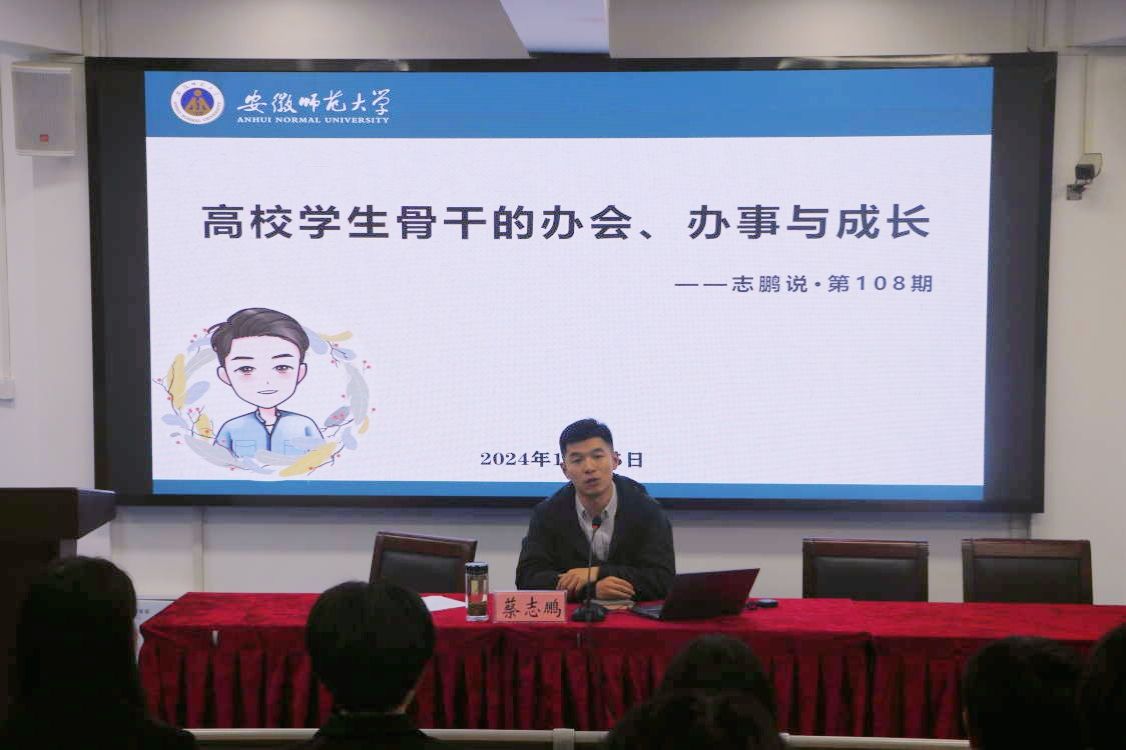 会议结束后,蔡志鹏做了题为《高校员工骨干的办会、办事与成长》的主题培训,他结合自身成长体会对员工骨干提出了工作要求,勉励员工骨干要注重涵养“六气”,不断提升综合素质。