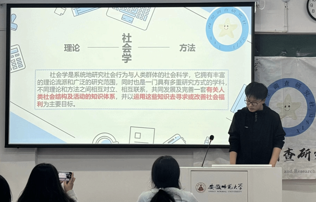 11月16日下午,海星调查研究社会员培训大会校区教学楼1208教室成功召开。大会采取线上线下相结合的形式,出席本次成员大会的有全体会员及工作人员。大会由社团活动部理事胡杰主持。