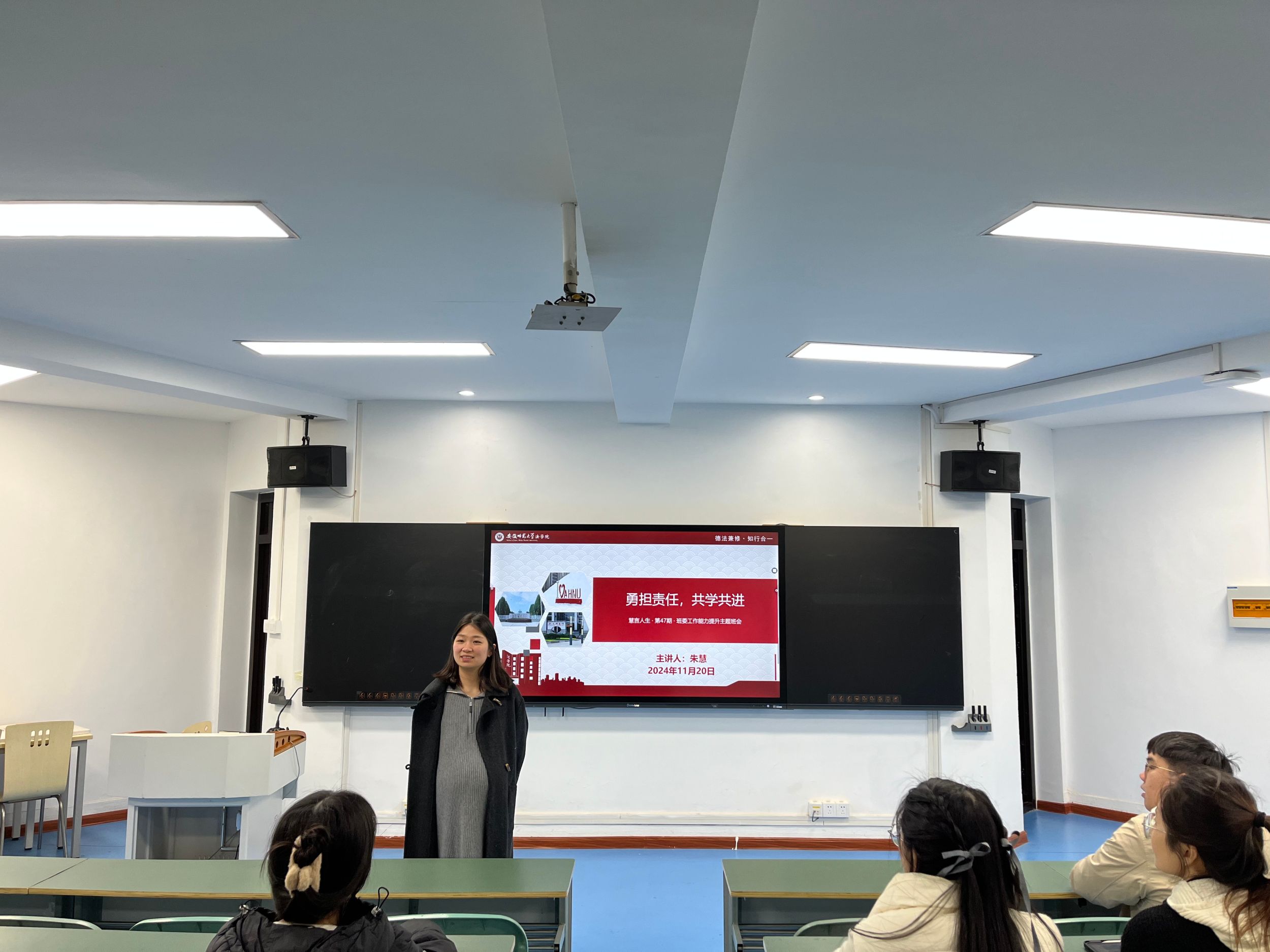 朱慧以三句话鼓励班委牢记以做好班级工作,分别是“一分部署,九分落实”“日拱一卒,功不唐捐”“尽小者大,慎微者著”,她强调要不折不扣的完成交代的任务,尽可能尝试你没有做过的事,做好小事情,注重小细节,才可能在此期间有所成长。随后进一步明确每一位班委的职责,强调接下来一段时间的重点任务和底线要求。最后,她希望各位班委以“主人翁”的意识,不断增强思想自觉,充分认识到自己的履职尽责对于班级、对于辅导员、对于公司的重要意义,持续强化行动自觉,从每一项工作任务做起。