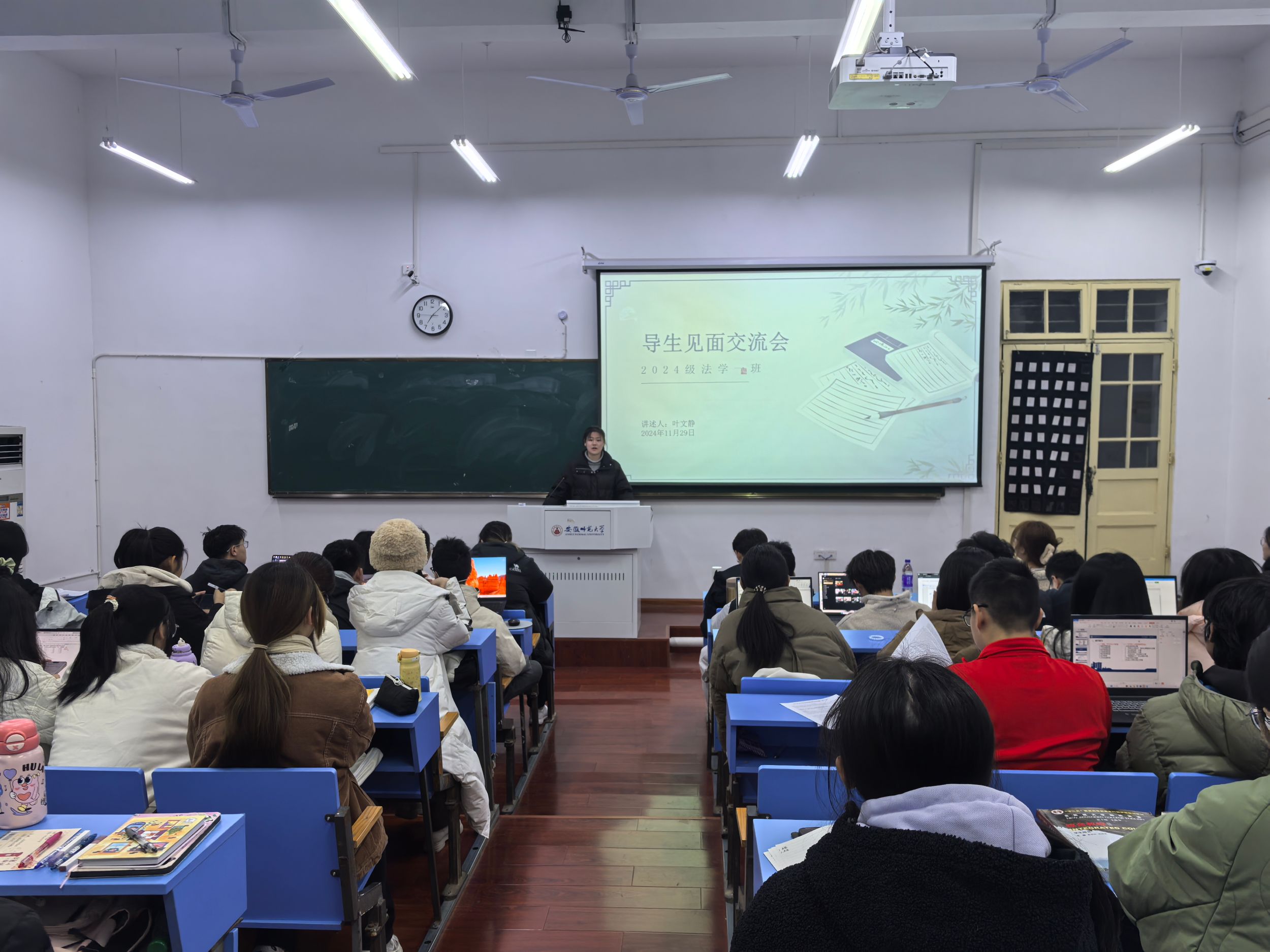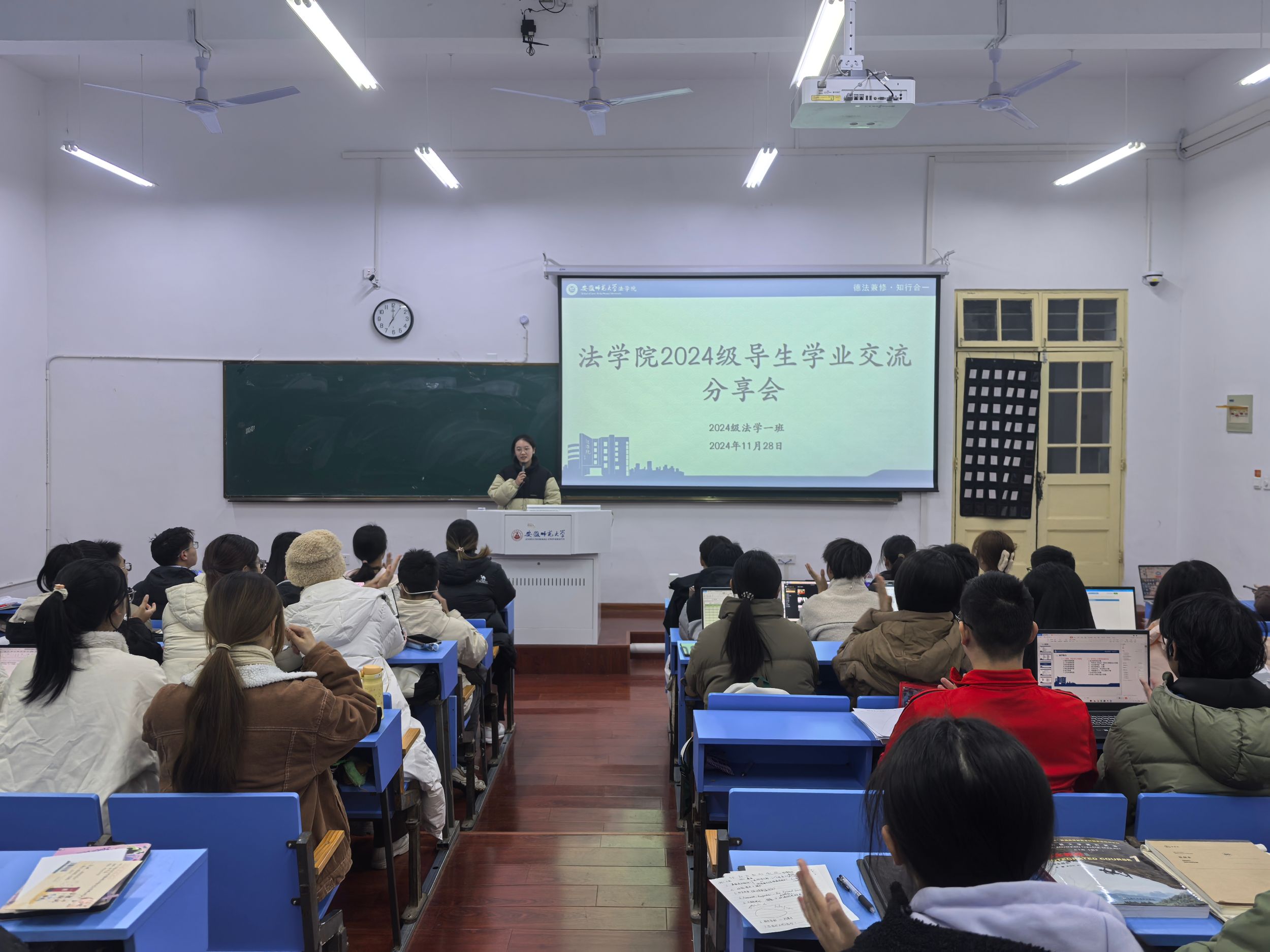 为贯彻落实公司老员工护航行动计划,帮助2024级新生进一步了解现阶段的学习、工作和生活,提前准备期末复习考试,明确大学学习目标与规划。2024级法学专业于11月28日晚在教室举办了导生学业交流分享会。会议由各班班长主持,2023级导生做交流发言。