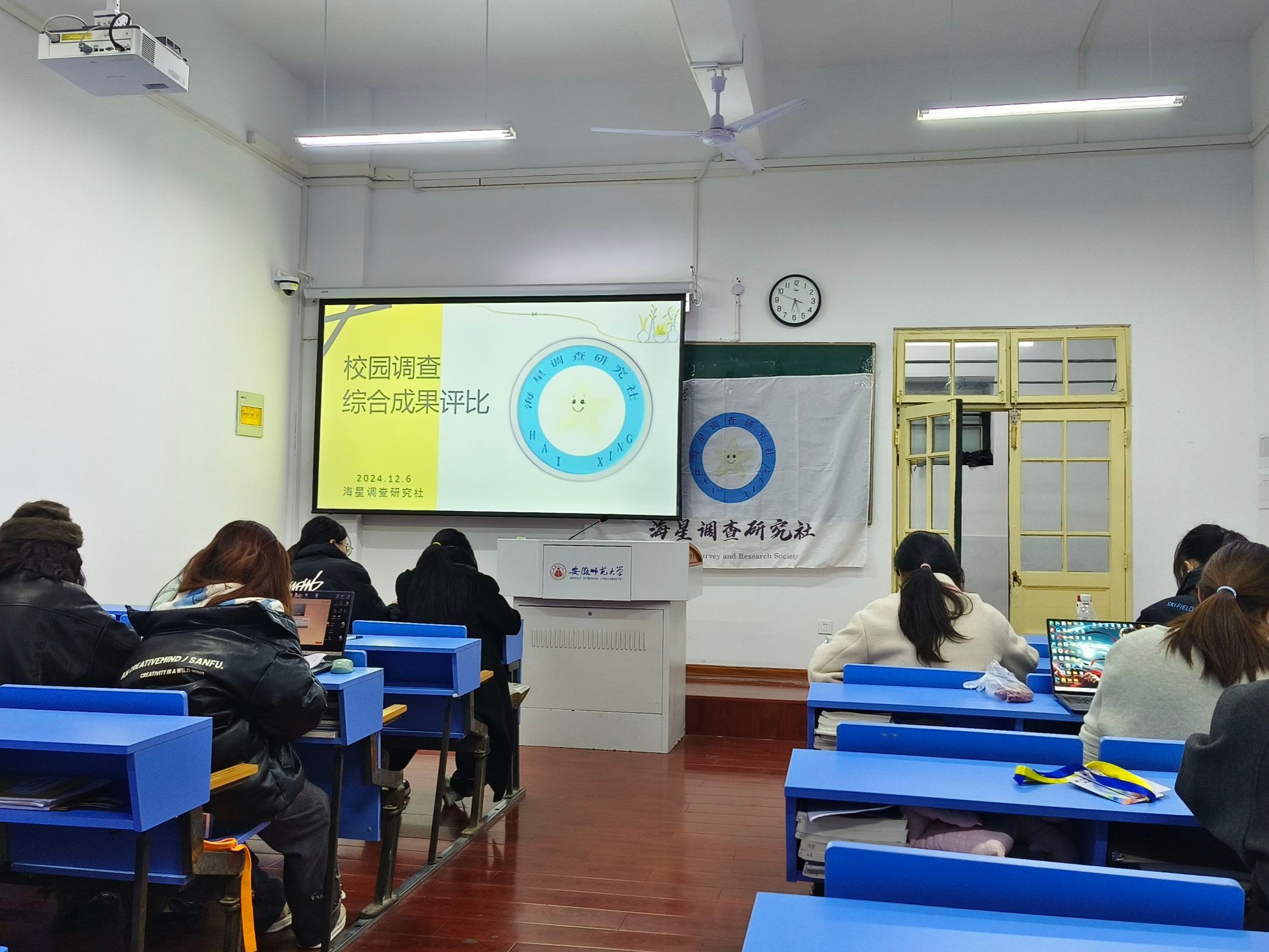 12月11日晚,海星调查研究社于赭山校区教学楼1208顺利召开校园调查成果评比会员培训会。此次培训会由社团活动部理事胡杰主持。社团各部门负责人以及各部门工作人员出席本次会议。