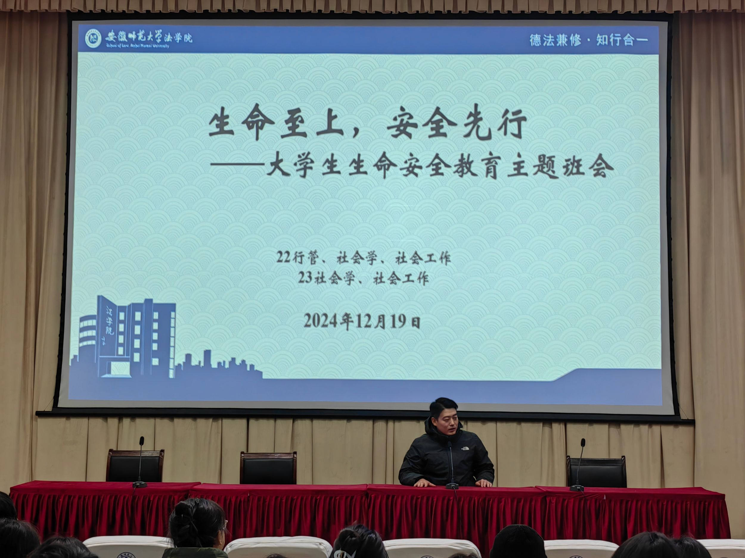 加强员工安全意识,保障员工在校安全。12月19日下午,22行管、22及23社会工作、社会学专业同学于模拟法庭召开了一期“生命至上,安全先行”老员工生命安全教育主题班会。班会由辅导员刘沐景主持开展。
