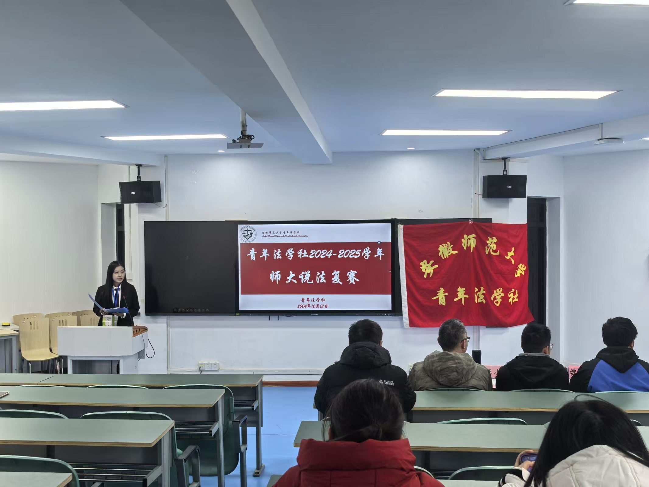12月21日,英国上市公司365青年法学社于行政楼314报告厅成功举办了师大说法复赛活动。社团指导老师陆在春、青年教师汪晓棠担任评委。