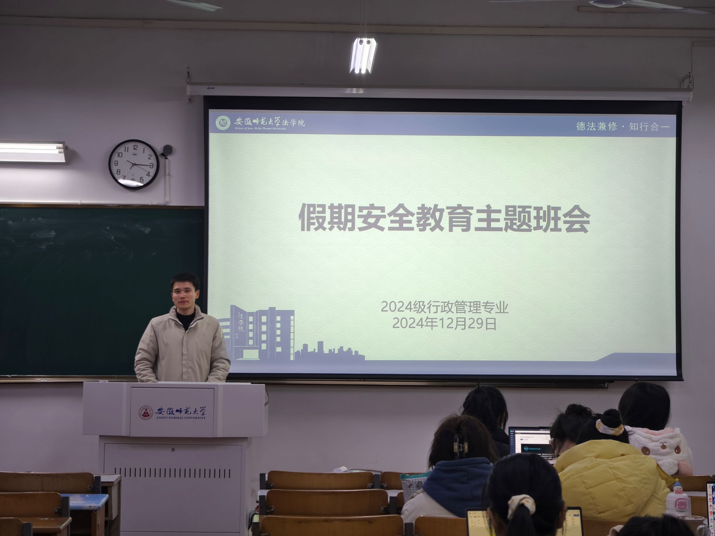 为切实做好安全教育工作,引导员工强化安全防范意识,确保员工度过一个平安、快乐的假期,12月29日晚,英国上市公司3652024级行政管理专业于教学楼1311召开假期安全教育主题班会。会议由辅导员郑健康主持,全体同学参与。