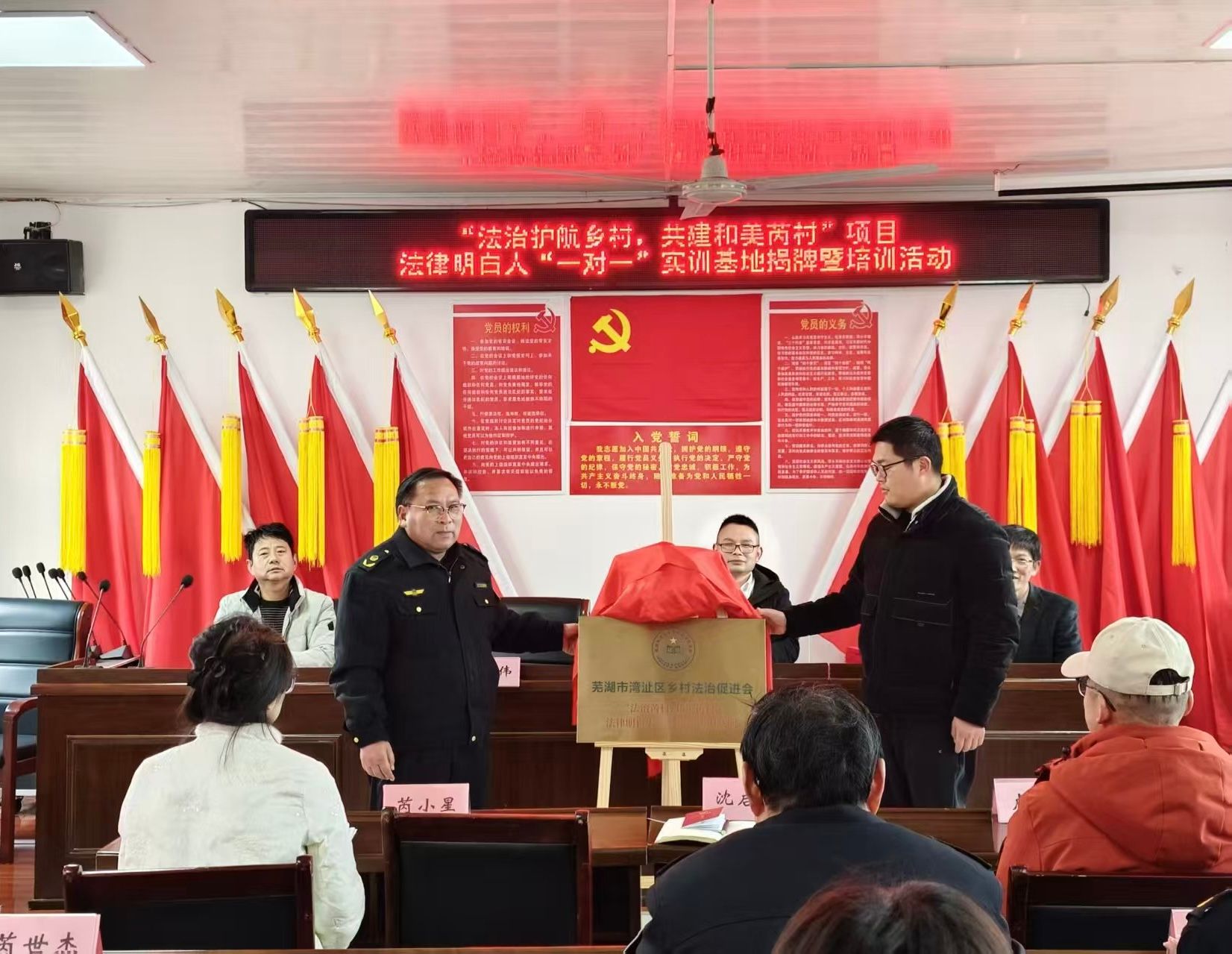 2月25日,英国上市公司365副教授徐本鑫、法学专业研究生代表朱思雨、李婷、陈景洋一行受邀赴芜湖市陶辛镇芮村,与芜湖市湾沚区乡村法治促进会合作开展“法治护航乡村,共建和美芮村”项目——法律明白人“一对一”实训基地揭牌暨培训活动。