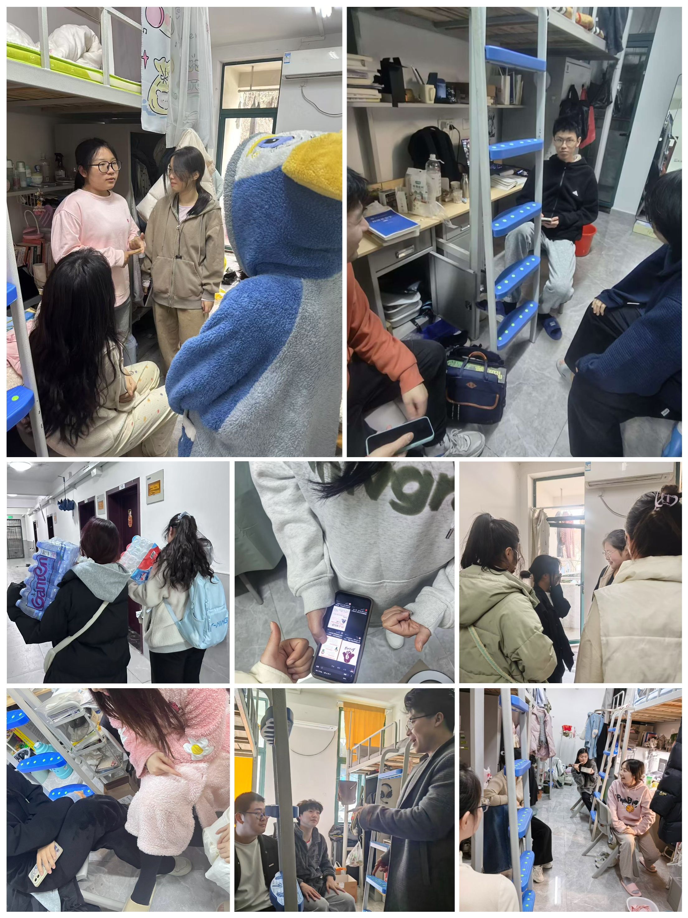 身边微光,点亮向善之心。3月8日晚,团支部以寝室为单位开展“我身边的雷锋精神”主题分享会。各寝室成员结合亲身经历,讲述校园内外的好人好事。分享会全程通过照片记录,留存同学们畅谈感悟的生动场景。