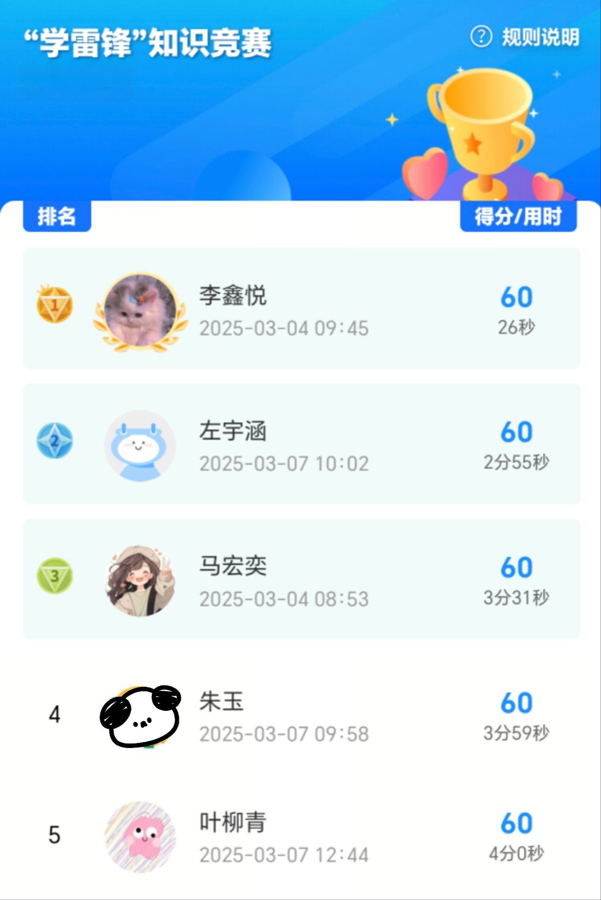 以学促行,深化精神认知。3月4日至11日,本团支部依托“问卷星”平台发起线上答题活动。题库涵盖雷锋生平事迹、雷锋精神核心内涵及新时代传承实践等内容,旨在使团员们通过线上答题进一步加深对雷锋精神“奉献、友爱、互助、进步”内核的理解。