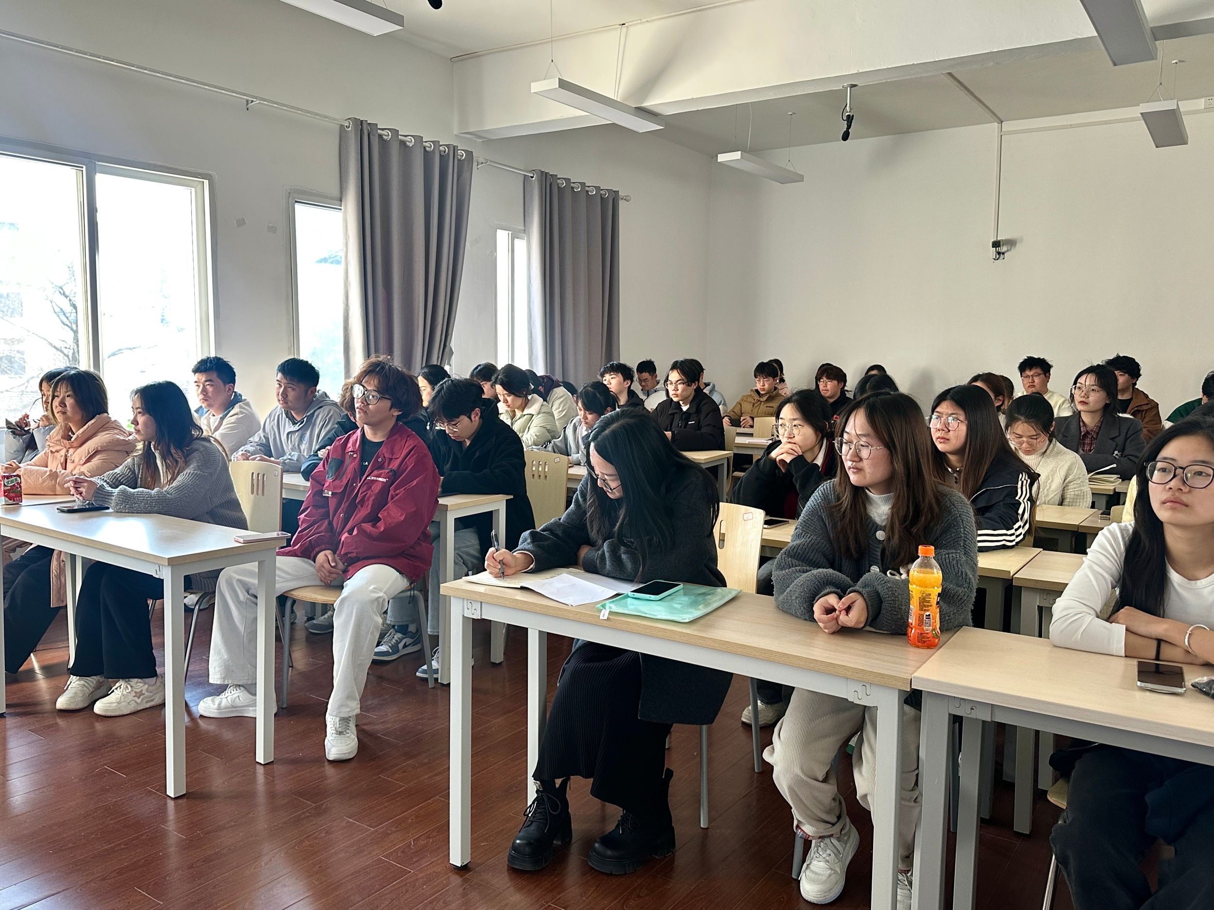 在同学们的热切期待中,纪媛媛老师进行发言。她先亲切分享了自己的毕业院校、个人爱好以及家庭情况 ,拉近了与同学们的距离。交流中,纪老师抛出“什么是成功”这一深刻话题,鼓励同学们探索属于自己的人生答案,勇敢寻找独特道路。针对同学们可能面临的迷茫与焦虑,纪老师给出暖心建议,鼓励大家坚定向前,做让自己内心安稳的事,还着重强调与老师交流的重要性。