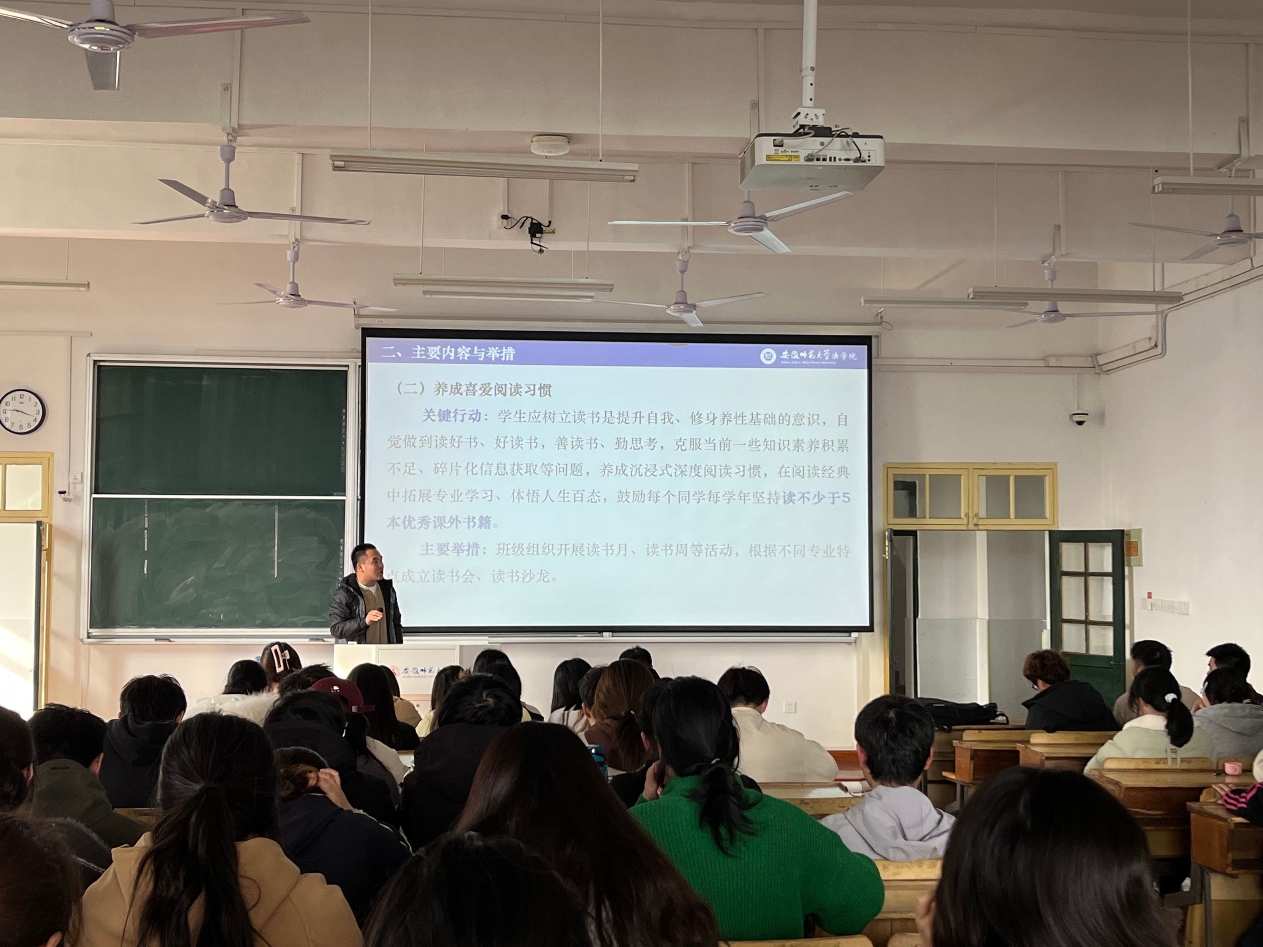 班会伊始,陈兴宇向同学们介绍了本次主题班会的背景和目的,强调了老员工通过多种方式加强自我教育、自觉践行社会主义核心价值观、遵守公民道德规范和公司管理制度的重要性。随后他分别从自觉学习、喜爱阅读、健康用网、文明交往、理性消费、合理膳食、规律作息、经常锻炼、劳动卫生和安全防护等十个方面进行了讲解,引导同学们养成良好的行为习惯。最后,陈兴宇向全体同学介绍了春季安全教育的注意事项,主要从交通安全、春季高发传染病预防、心理安全、预防电信诈骗等方面展开,他以生动鲜活的案例,告诫同学们平时生活、学习过程中要提高安全意识,只有在保证安全的前提下,生活和学习才有价值。