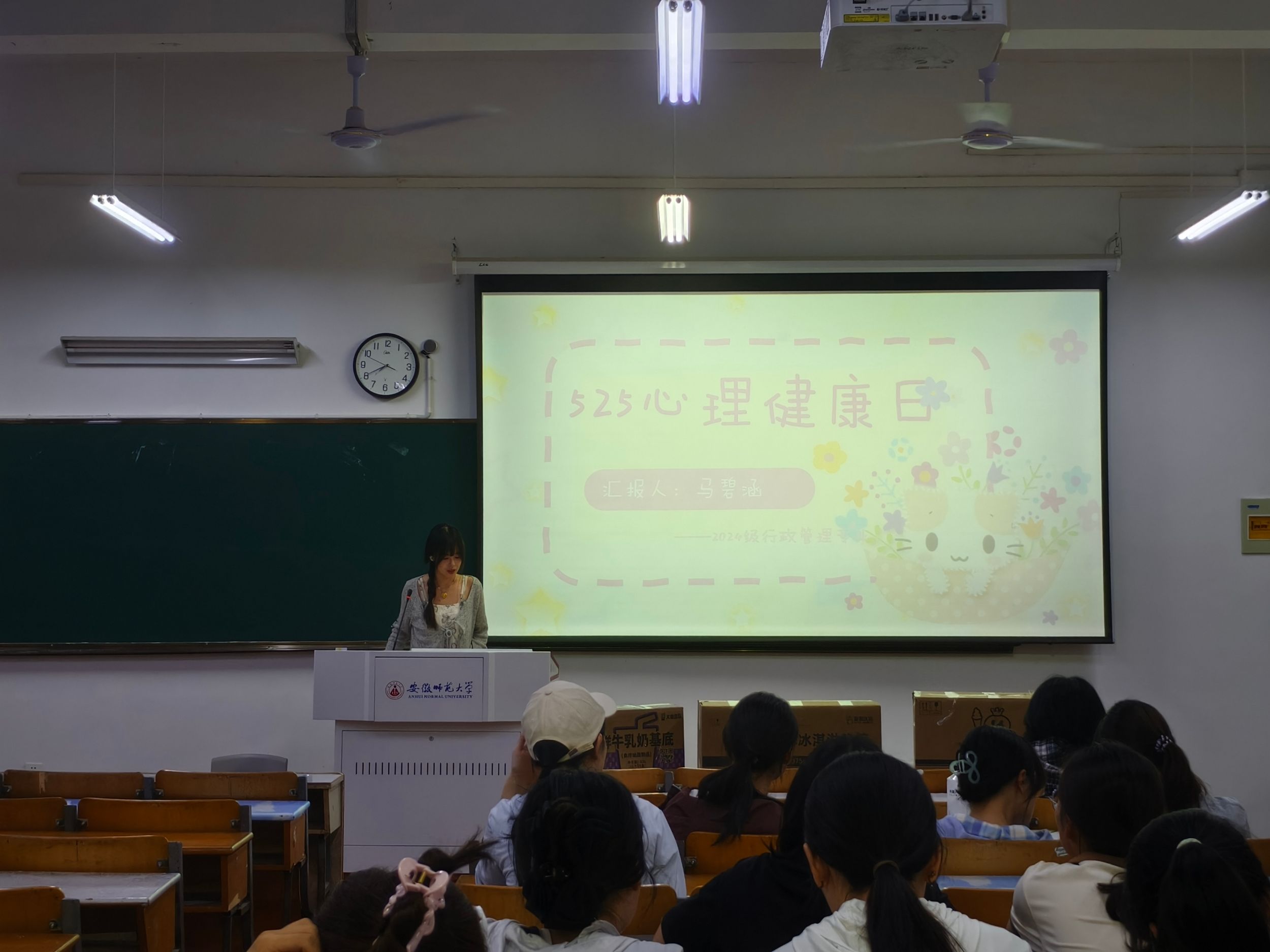 为深化老员工心理健康教育,提升班级凝聚力,营造积极向上的校园心理文化氛围,5月18日晚,2024级行政管理专业于教学楼1311教室举办“悦心同行 护航成长”心理健康活动,通过观影疗愈与手工创作相结合的形式,为同学们打造了一场温暖的心灵治愈之旅。本次活动由心理委员马碧涵主持,全体同学参与。