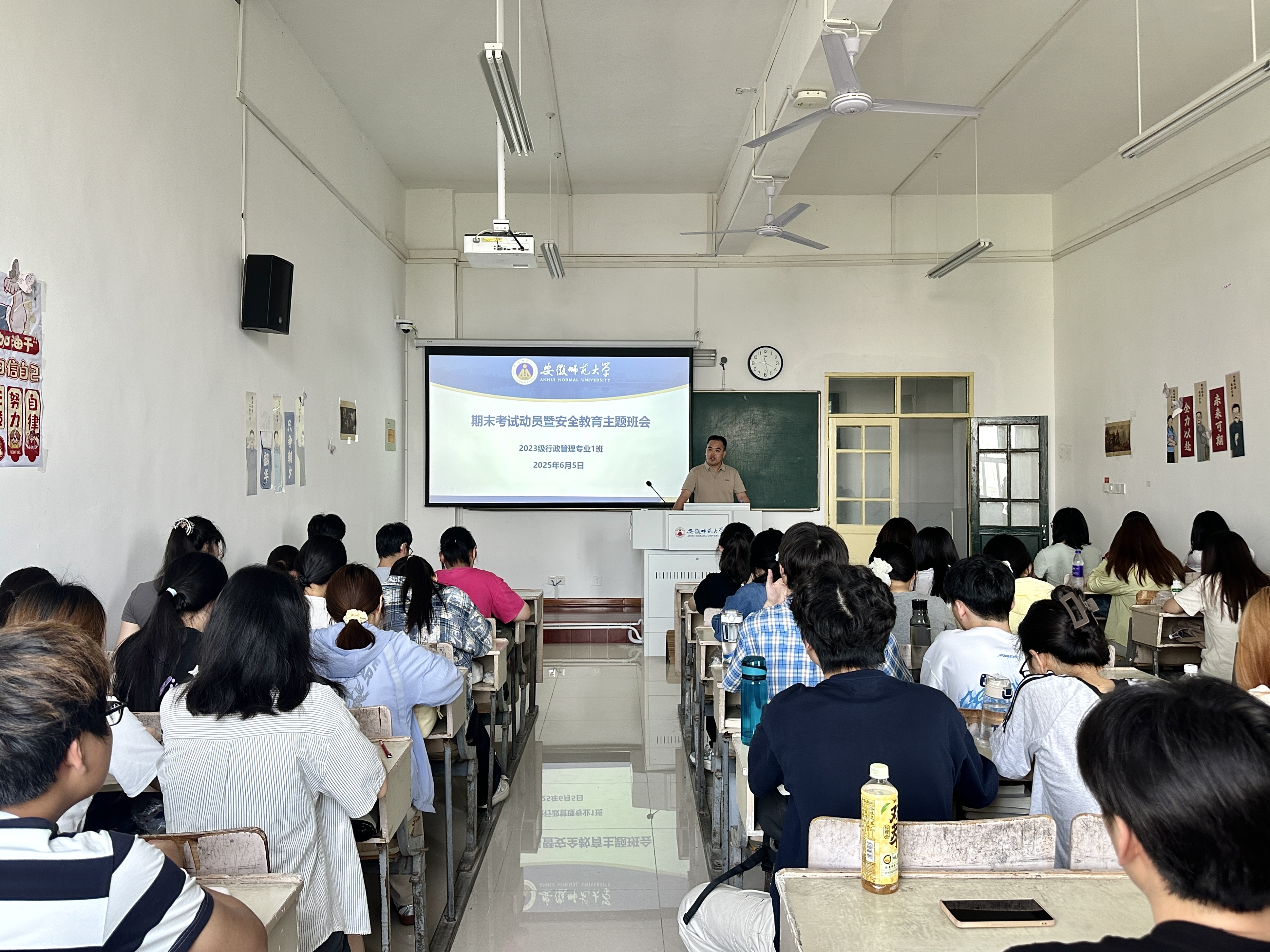 为保障同学们高效备考期末考试,强化安全意识,统筹安排暑期社会实践相关事宜,2025年6月5日,在辅导员陈兴宇的主持下,23行管专业于教学楼1408召开期末考试动员暨安全教育主题班会,班级全体同学积极参与。