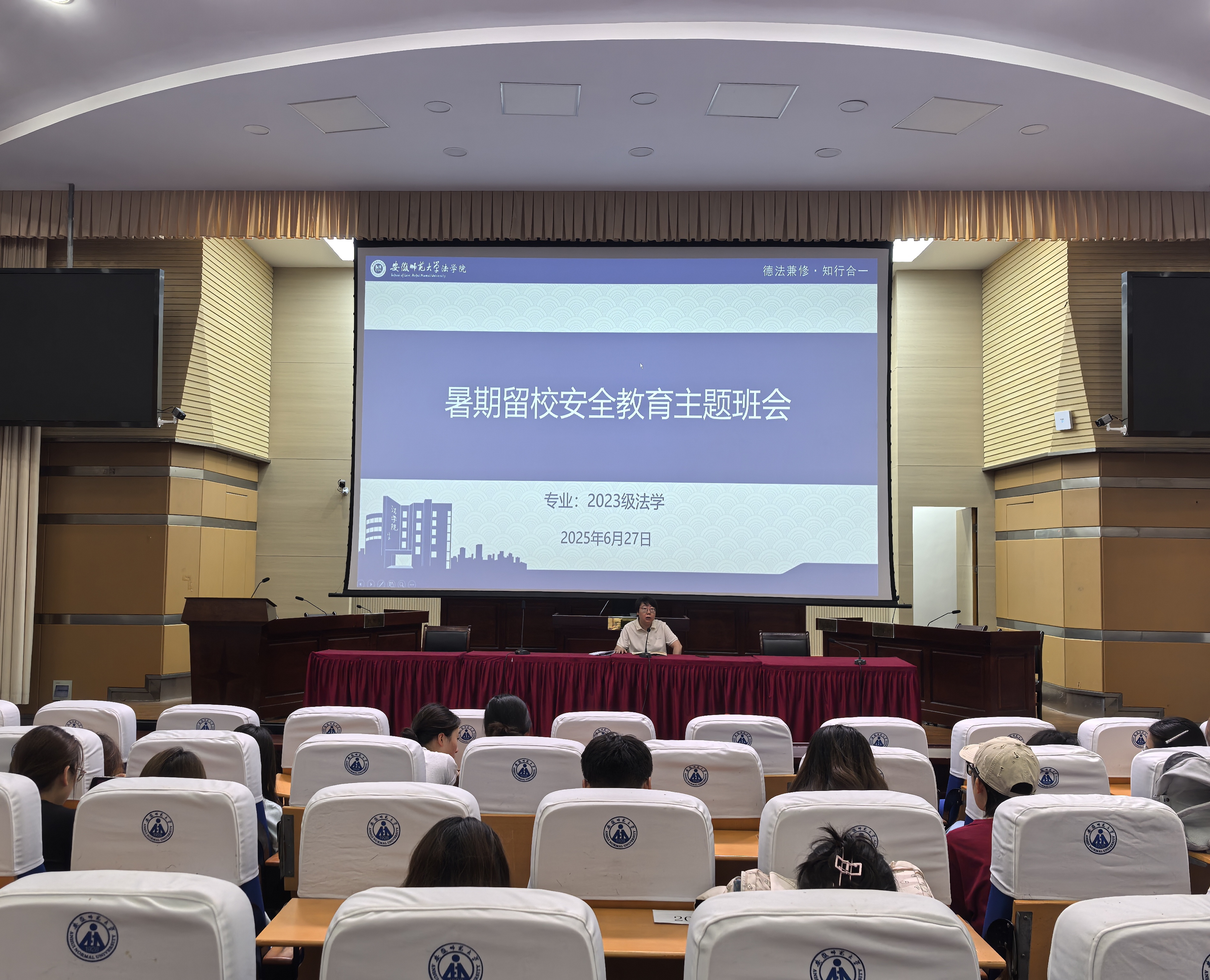 为增强员工安全意识,确保同学度过一个平安、充实的暑假,6月27日下午,2023级法学专业召开暑期安全教育主题班会。会议由辅导员王虹圆主持,2023级法学专业全体同学参加。
