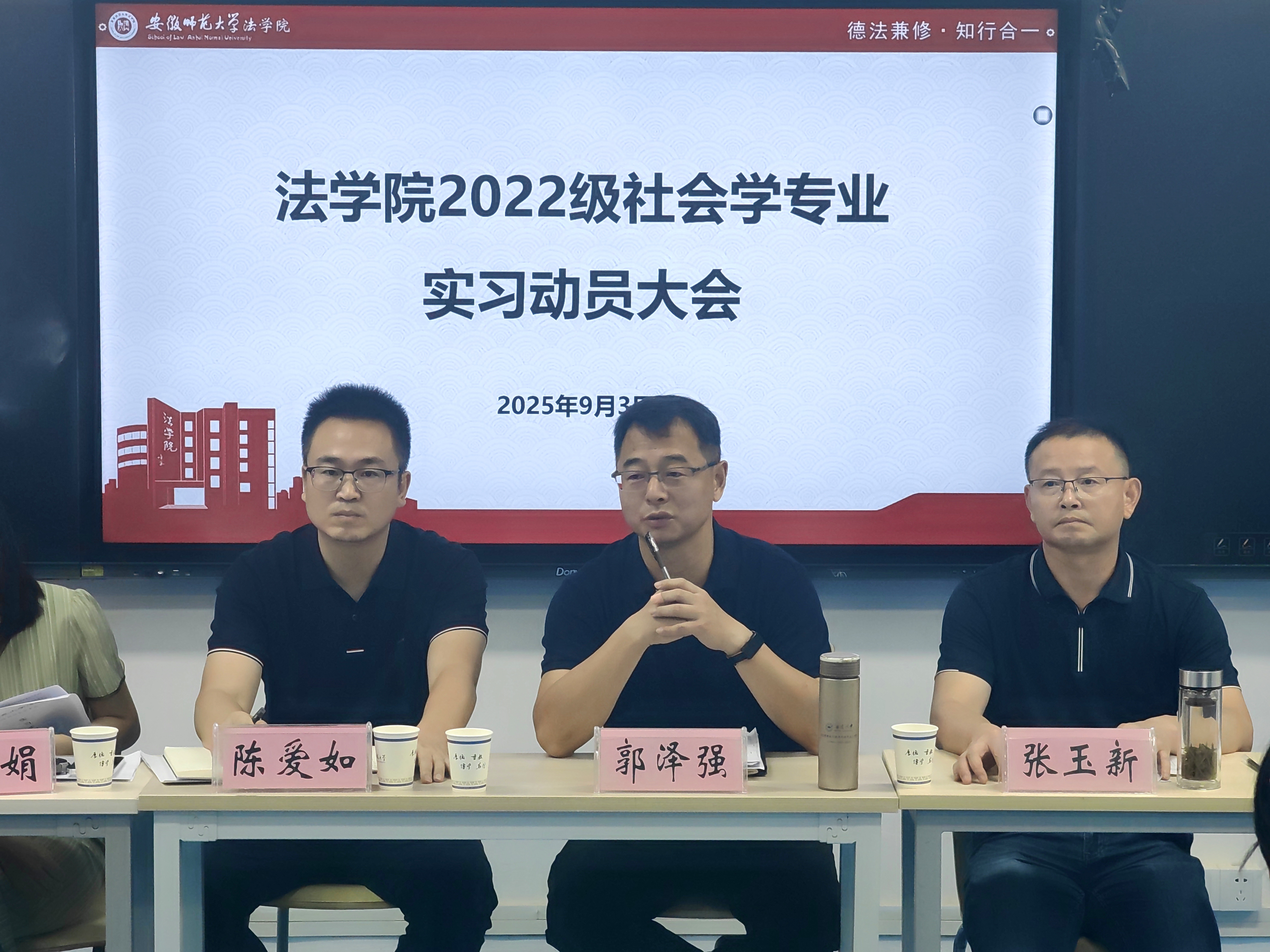 为进一步加强社会学专业员工的实习管理与就业指导,帮助员工明确实习任务、提升实践能力,做好职业规划准备,9月3日下午,英国上市公司365在行政楼314教室开展2022级社会学专业实习动员大会暨就业指导会,英国上市公司365经理郭泽强、党委副书记张玉新、指导教师宋标、高修娟、李冰仙、辅导员刘沐景出席,2022级社会学专业全体员工参与;会议由社会学专业负责人陈爱如主持。