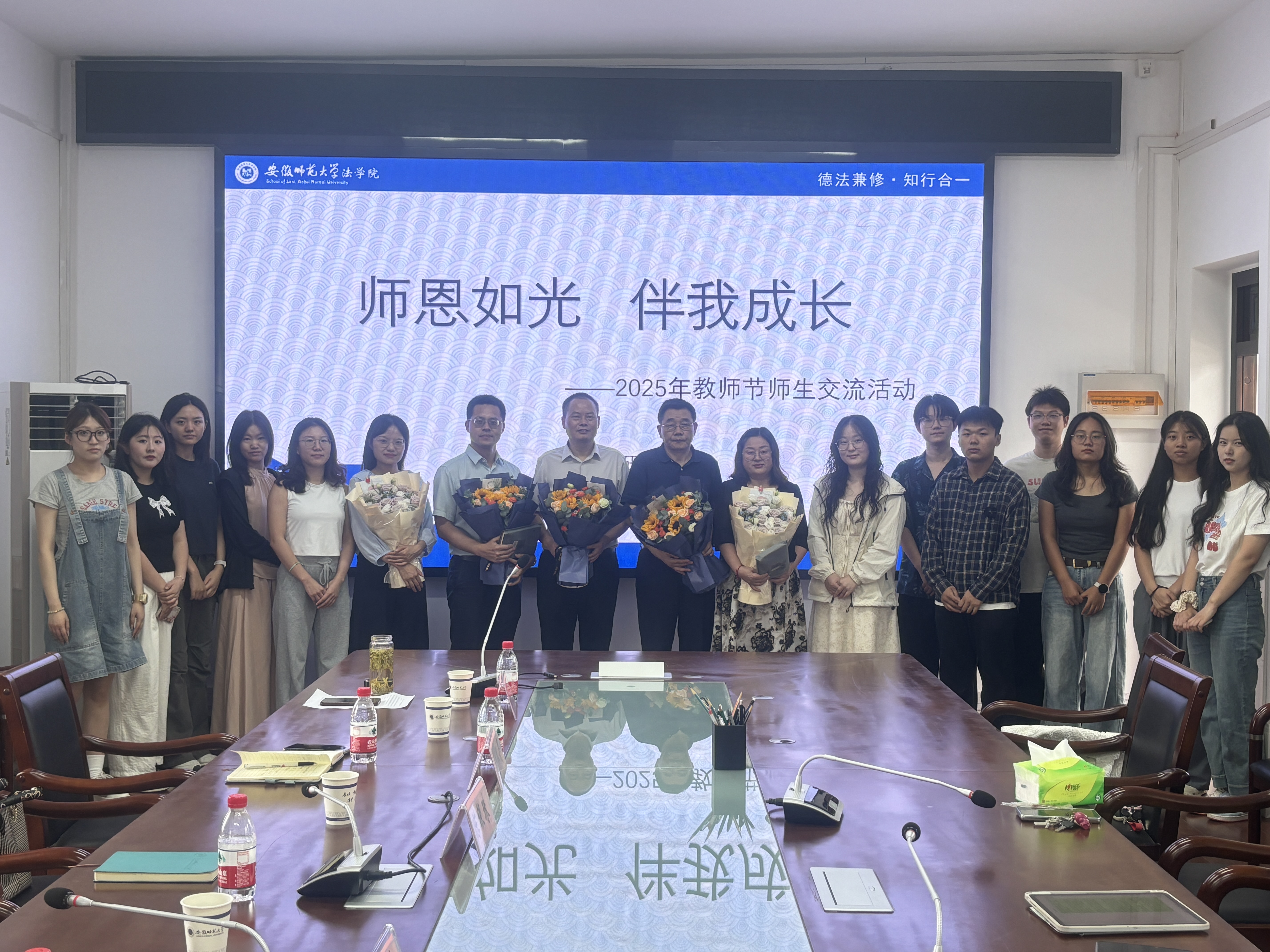 首先,献花合影。员工代表向老师们敬献鲜花,表达对老师悉心指导与无私关怀的崇高敬意。一束束鲜花承载着学子感恩之情,现场掌声热烈,气氛温馨动人。