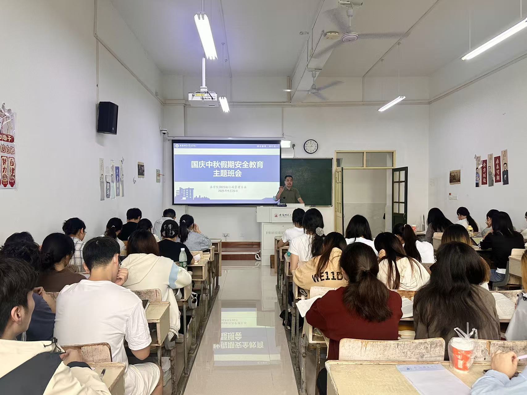 为切实增强同学们的安全防范意识,筑牢假期安全防线,2025年9月25日,2023级行政管理专业于教学楼1408教室召开国庆中秋假期安全教育主题班会,本次班会由辅导员陈兴宇主持,班级全体同学参会。