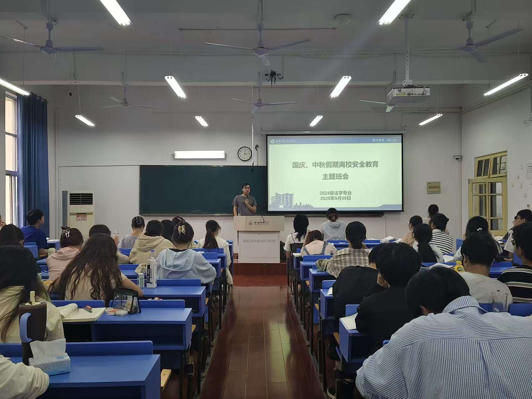 为切实增强同学们的安全防范意识,筑牢假期安全防线,2025年9月30日,2024级法学专业于教学楼1203教室召开国庆中秋假期安全教育主题班会.本次班会由辅导员崔健主持,班级全体同学参会。