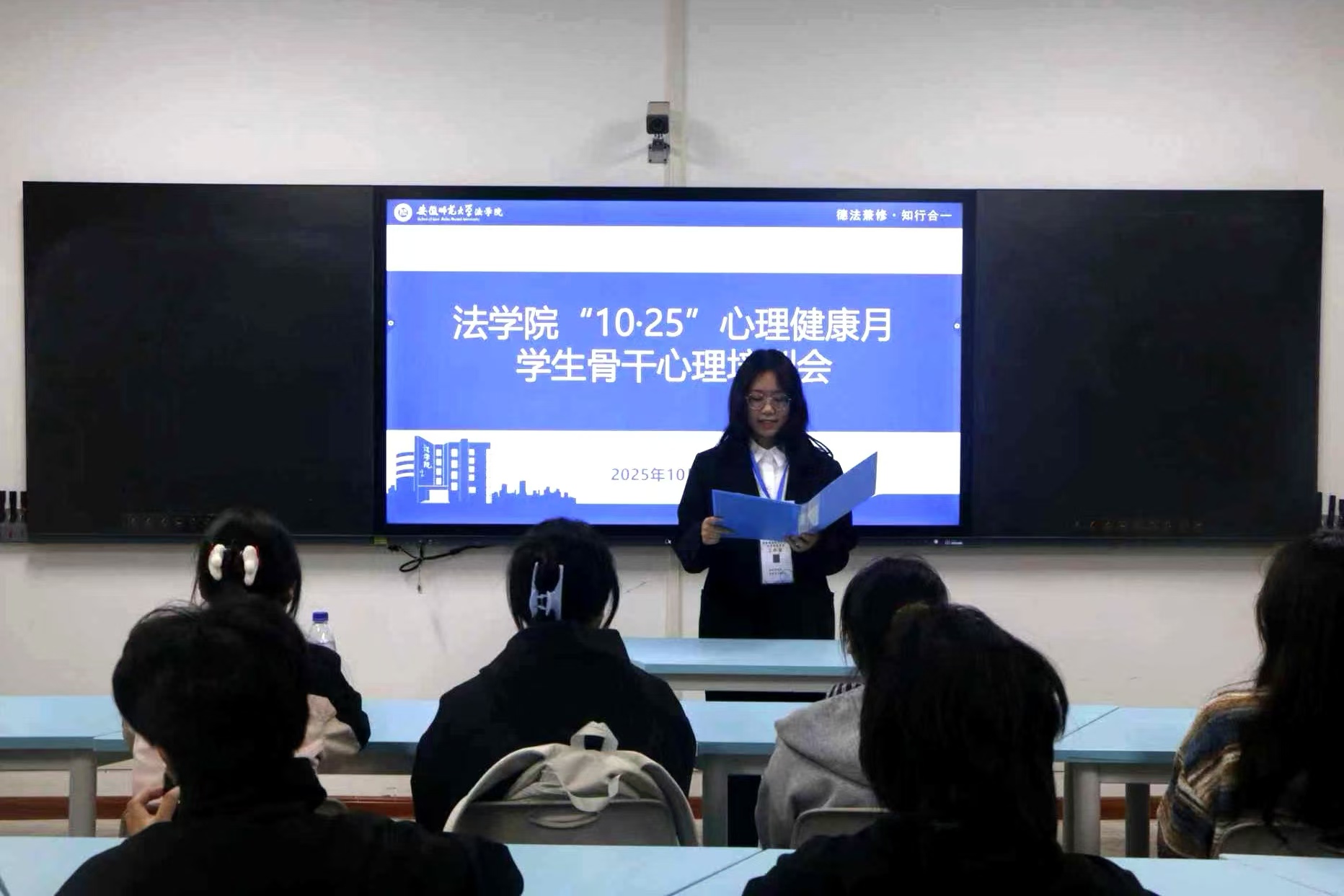 培训以“行动起来,共促员工心理健康”为主题。王悦结合老员工心理发展规律与典型现实案例,系统阐释心理委员的角色认知与职责内涵,分享倾听、共情等核心心理支持技巧的实践应用,并就如何有效识别与回应同学心理需求、营造积极健康的班级心理氛围进行深入讲解。此外,她还结合自身成长经历,分享在心理服务过程中的自我调适经验与收获感悟,鼓励心理委员勇于担当、主动作为。