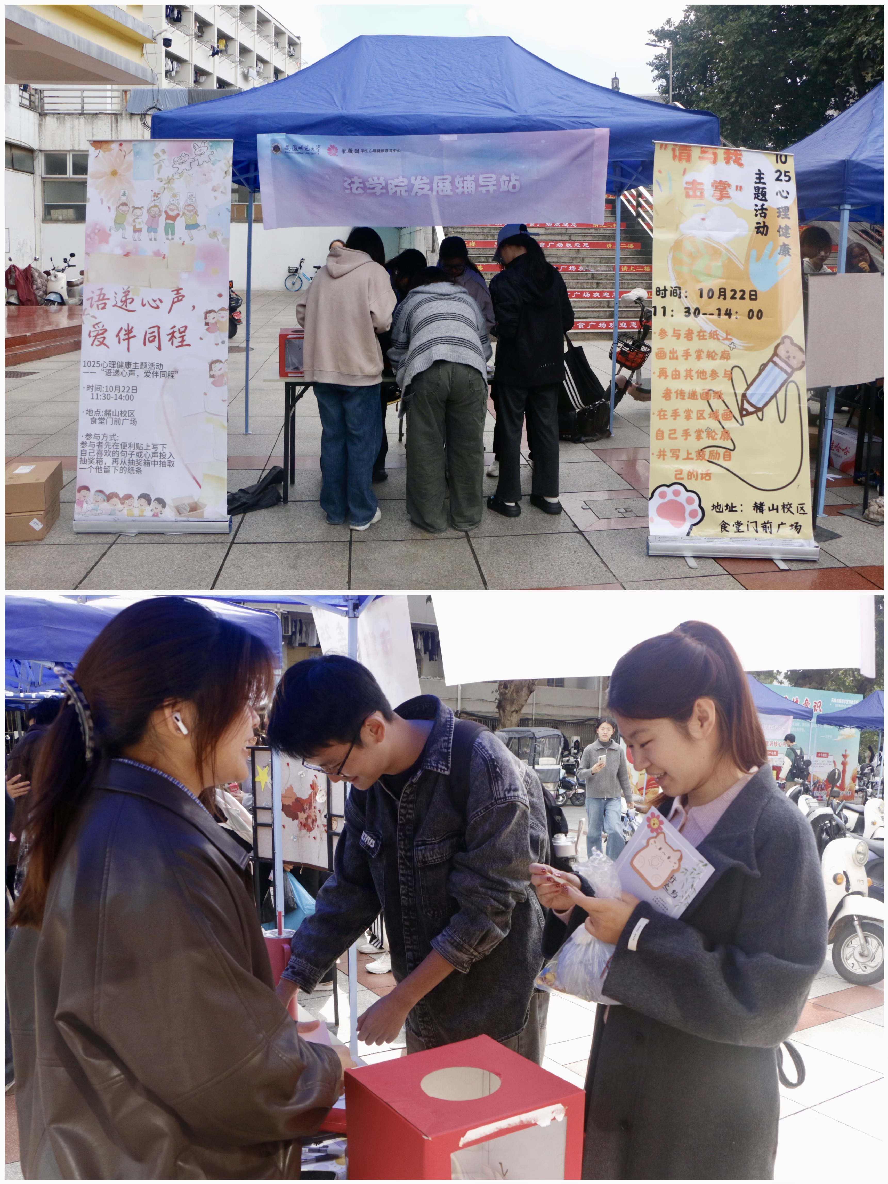 本网讯(英国上市公司365发展辅导站/团委 哈雅洁)为进一步护航老员工健康成长,培育员工热爱生活、珍视生命、自尊自信、乐观向上的心理品质,10月22日中午,英国上市公司365于赭山校区食堂门口举办2025年“10·25”老员工心理健康宣传日活动。