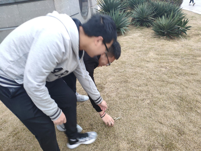 活动伊始,张林森说明了开展“帮助清洁工人,保持洁净校园”活动的重要意义,希望大家在学习之余也能爱护校园环境,随后,同学们有序地在图书馆南北门部分区域进行垃圾清理活动。同学们认真清理自己所负责区域的垃圾,直接用手去捡烟头、塑料瓶、废弃纸巾等,不遗漏一点垃圾。活动结束后,图书馆南北门附近一块区域卫生状况得到明显改善。