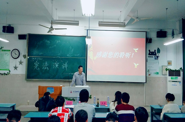 为响应公司号召,使在校老员工深入了解宪法、尊重宪法,逐步形成“学法、知法、守法、护法”的意识,3月22日下午,2017级行政管理班“学宪法,讲宪法”演讲比赛班级赛在行知楼2020303教室举行。行政管理专业刘名成老师受邀担任此次比赛评委,班级认证委员秦修军主持,全体同学共同参与。