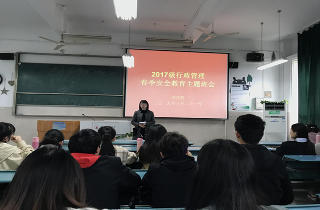 为培养同学的安全意识,做好班级安全宣传工作,2017级行政管理班于3月24日在2020303教室召开了春季安全教育主题班会。会议由辅导员赵义丹主持,2017级行政管理专业同学全体参与。