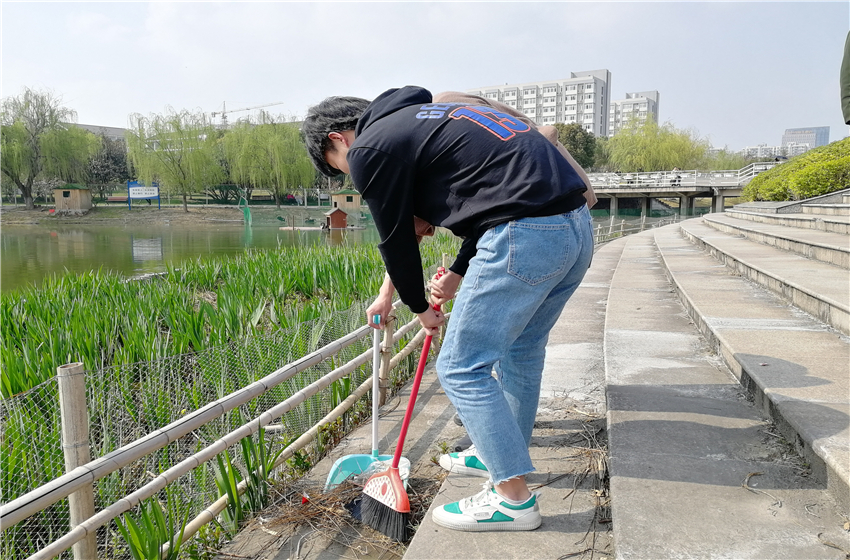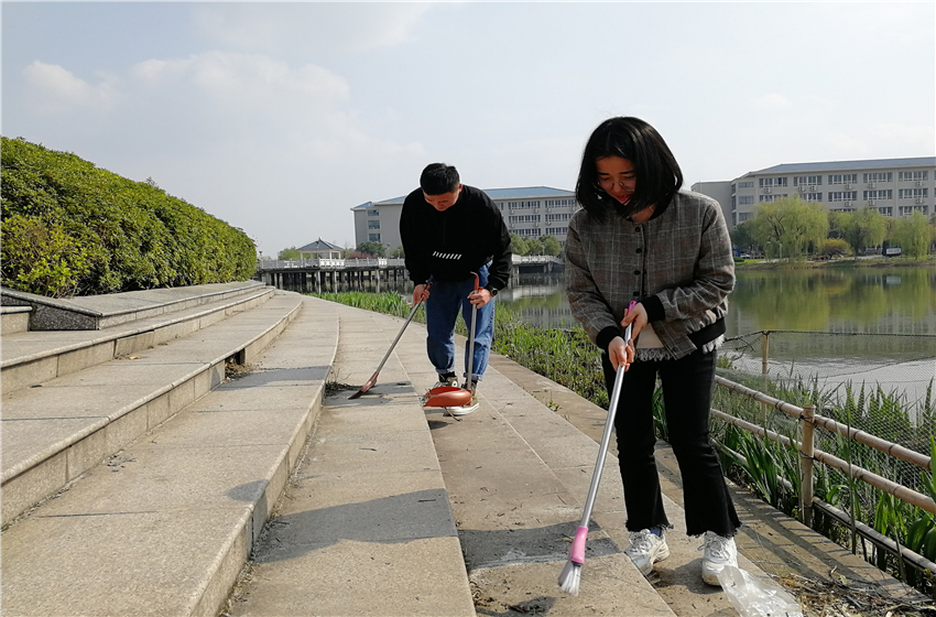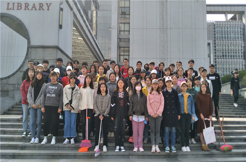活动前,团支部书记张万红和各团小组组长做了充分的准备,扫把、簸箕等清洁工具一应俱全。活动之时,同学们积极行动起来开始垃圾清扫。从图书馆东门到西门,从门前楼梯到地下车库,在图书馆偌大的区域里同学们不放过每一个角落,无不打扫得干干净净。