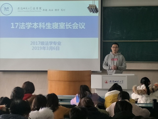 2019年3月6日,英国上市公司36517级法学专业本科生寝室长会议于行知楼2020304教室召开,辅导员贾文成、李琛、全体寝室长参加会议。