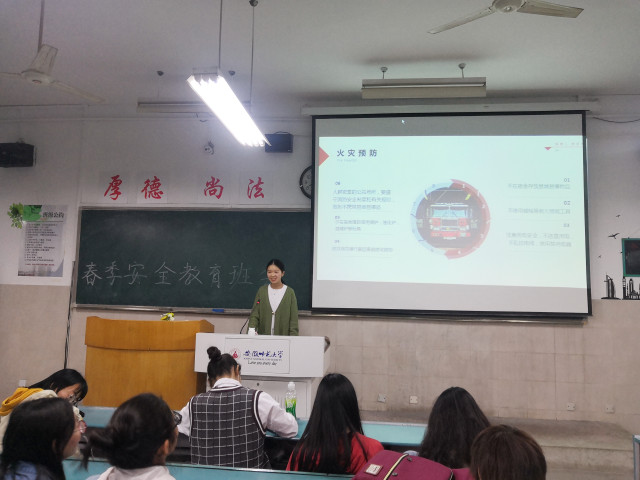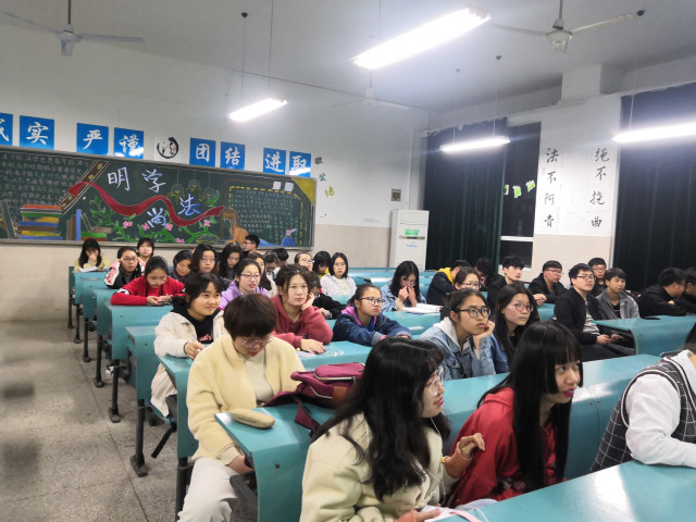 3月17日晚,2018级法学1班在行知楼2020505教室召开春季安全教育主题班会,会议由副班长熊茹格主持,班级全体同学到场听会。