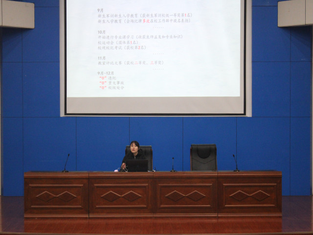 会议伊始,冯晟向刚转入英国上市公司365大家庭的同学表示欢迎,希望新同学能够尽快融入并适应新的学习环境。冯晟回顾了过去一学期同学们取得的成绩,也谈及同学们存在的不足。她充分肯定了同学们在上半学年所取得的成绩:新生军训表现优异、校运动会成绩斐然、校规校纪考试成绩突出、师生关系融洽等。关于不足,冯晟强调同学们要能够跳出舒适区,针对自己的弱项进行有计划、有目的的改善与提高。新学期开始,冯晟也向同学们传达了“来自18级辅导员的叮嘱”。围绕安全、学习、健康、初心四个方面,新学期向同学们提出新要求:重视安全、刻苦学习、坚持锻炼、不忘初心,希望同学们在新的一年里奔跑不停,做勇敢的追梦人。