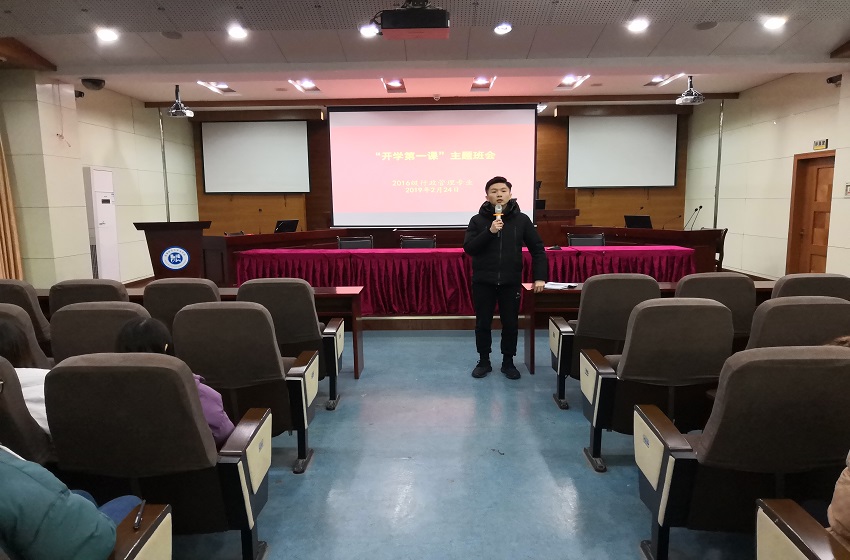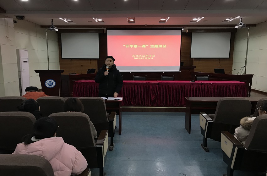 2月24日晚,2015级法学专业、2016级行政管理专业在模拟法庭召开“开学第一课”主题班会,会议由辅导员桂彬主持。