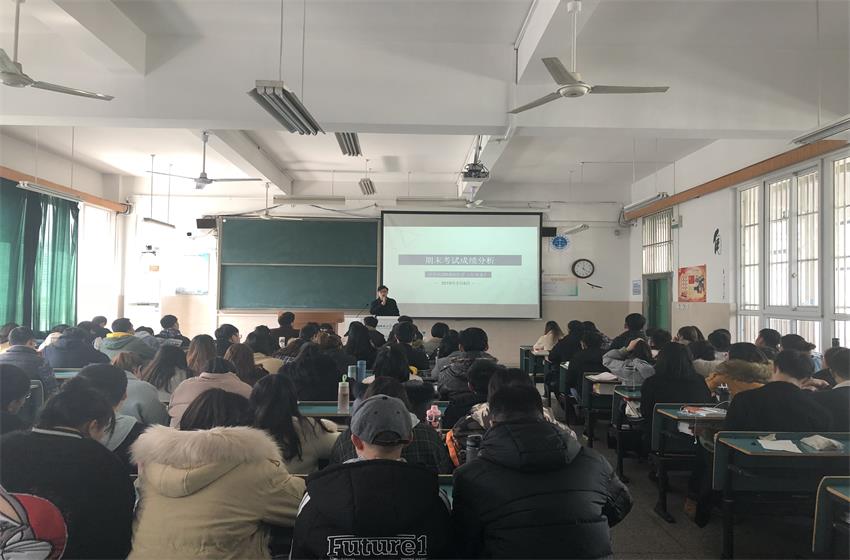 黄世凯从成绩的总体情况、专业课情况、名次变化情况等三个方面对班级期末考试成绩进行了大数据分析。在分析中还就优秀率、及格率、平均分等进行了横向、纵向比较,对存在的不足和问题进行了具体分析和评价。此外,还以班干、党员、资助员工、寝室等群体为对象进行类型化分析,让员工们在数据中清晰定位,在定位中努力反思,在反思中追求进步。