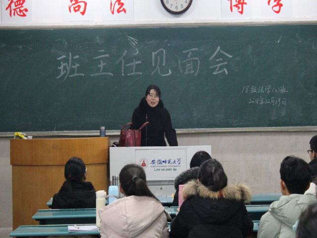 12月19日下午,2018级法学2班在行政楼2020505教室举行了班主任见面会,班主任张素凤副教授出席,法学2班全体同学参加。