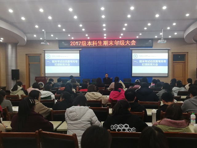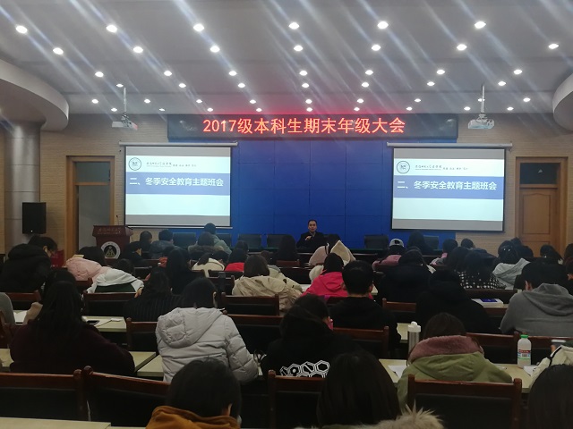 2018年12月4日,2017级本科生期末年级大会于第三报告厅顺利召开。会议由辅导员陈兴宇主持。